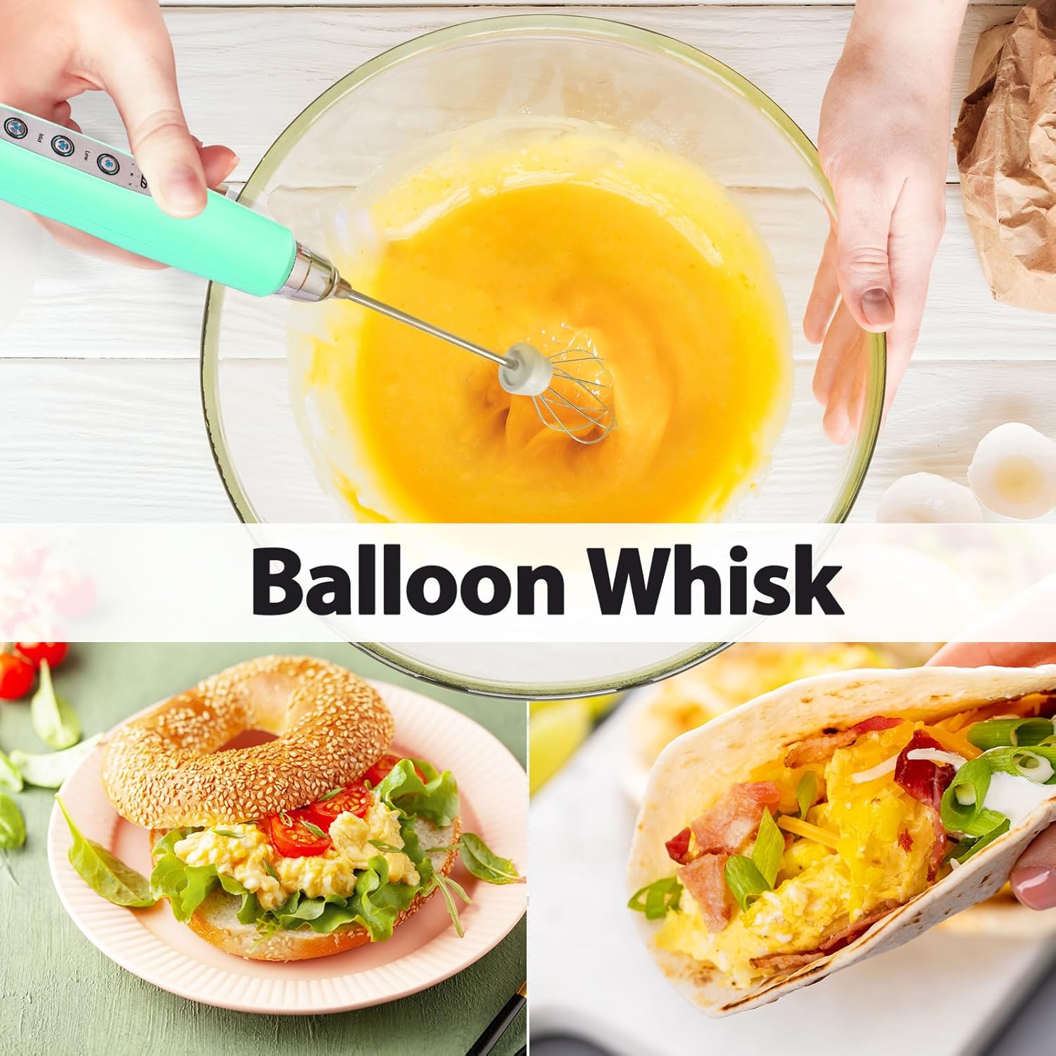 - 3 Whisks and 3 Speed Adjustable Frother : The matcha frother comes with 3 adjustable whisking speeds. SLOW SPEED for stirring egg yolks, powder drinks. MEDIUM SPEED for making jam, matcha tea. HIGH SPEED for milk or coffee froth, fluffy whipped cream, egg whites. Versatile 3 replaceable whisks: SPRING WHISK for creating milk and coffee froth, to make delicious drinks; BALLOON WHISK for mixing egg and whipping cream; HOOK WHISK for blending powders, making jam