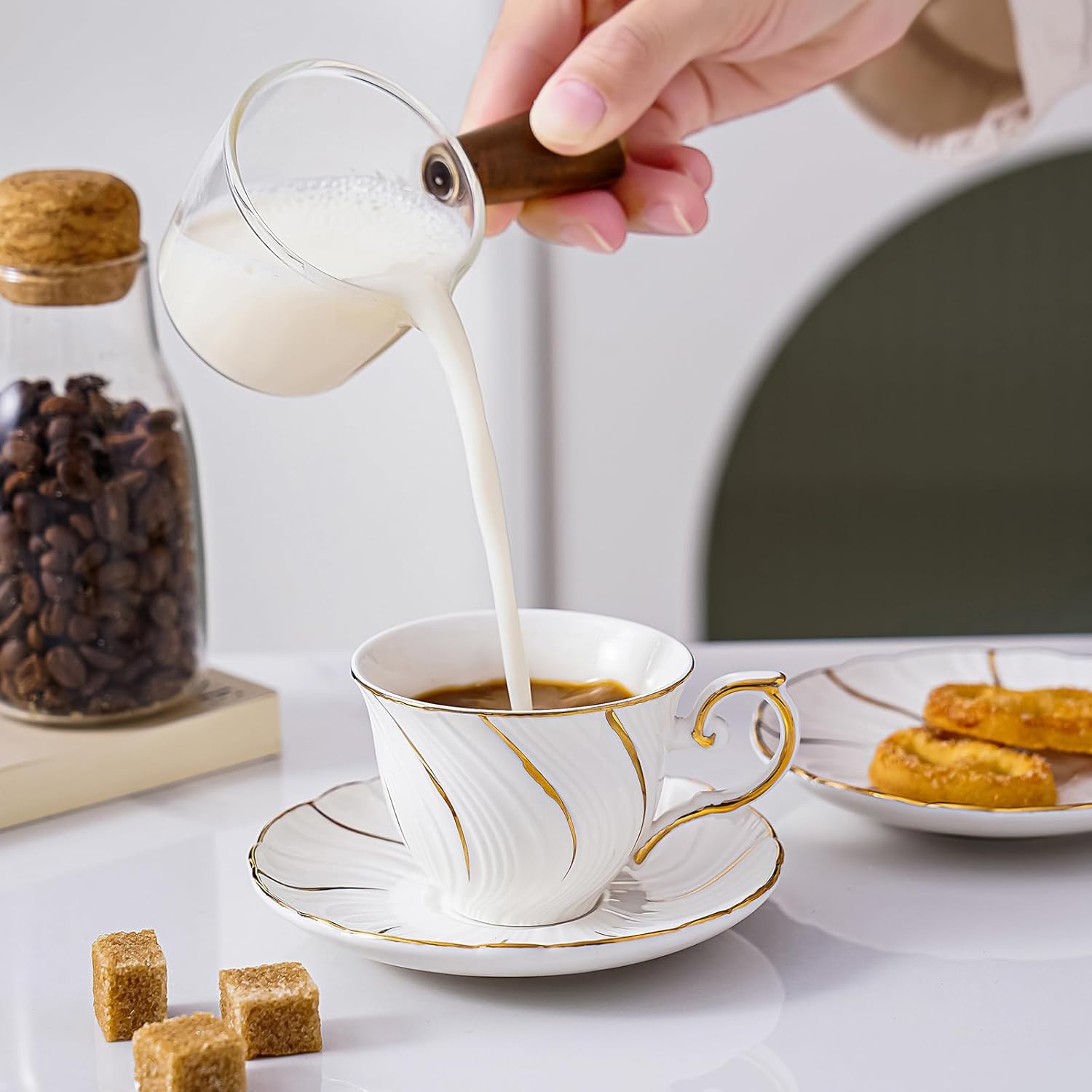 - Small size and minimalist design:The small size focuses on the aroma and flavor of quality drinks, and the waterline design adds to the overall smooth and airy lines. The modern style design is suitable for any kitchen and cafe, designed to make your food look more delicious. Make your mood more pleasant and relaxing.