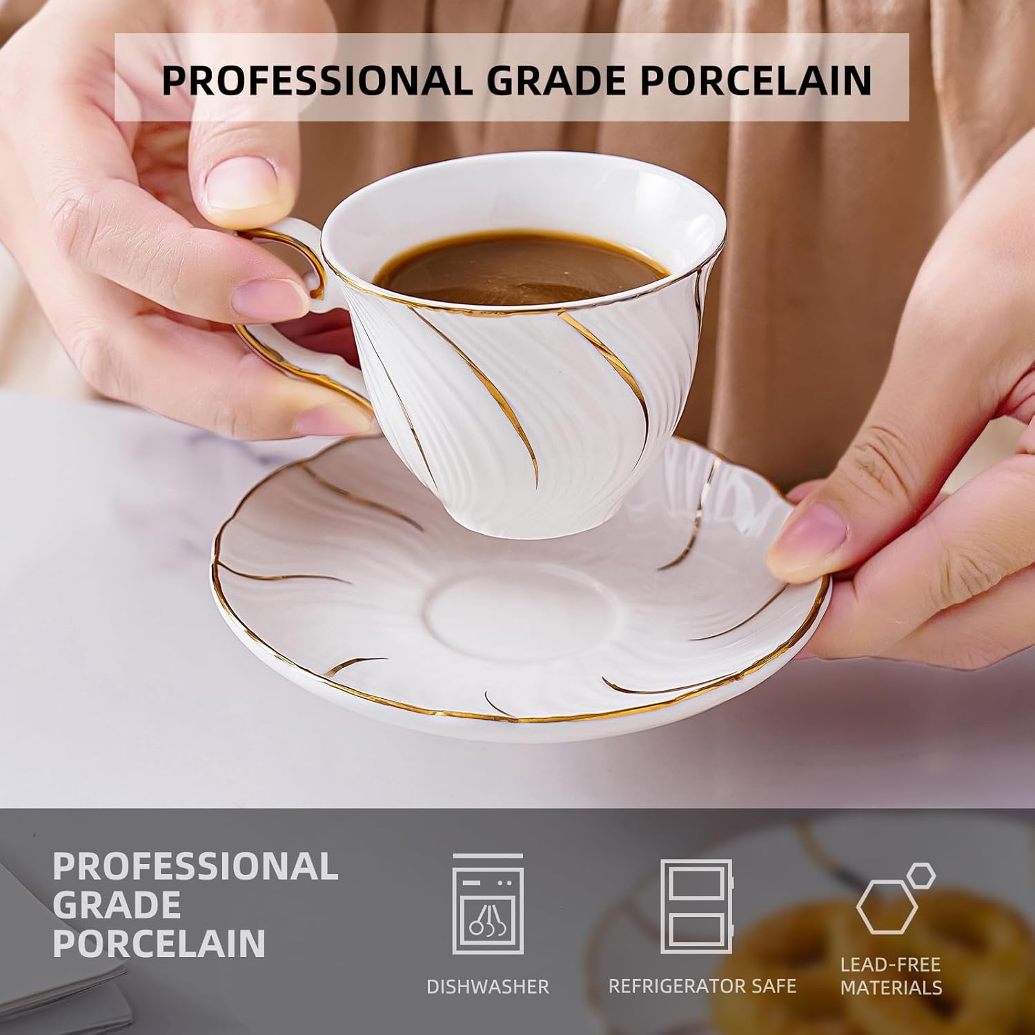 - Ceramic Material: Ceramic espresso cup with saucer set is made of durable high-fired porcelain, which is more heat-resistant, durable and long-lasting than glass. Ceramic is smooth and easy to clean daily. NOTE: Not suitable for use with microwave or oven.