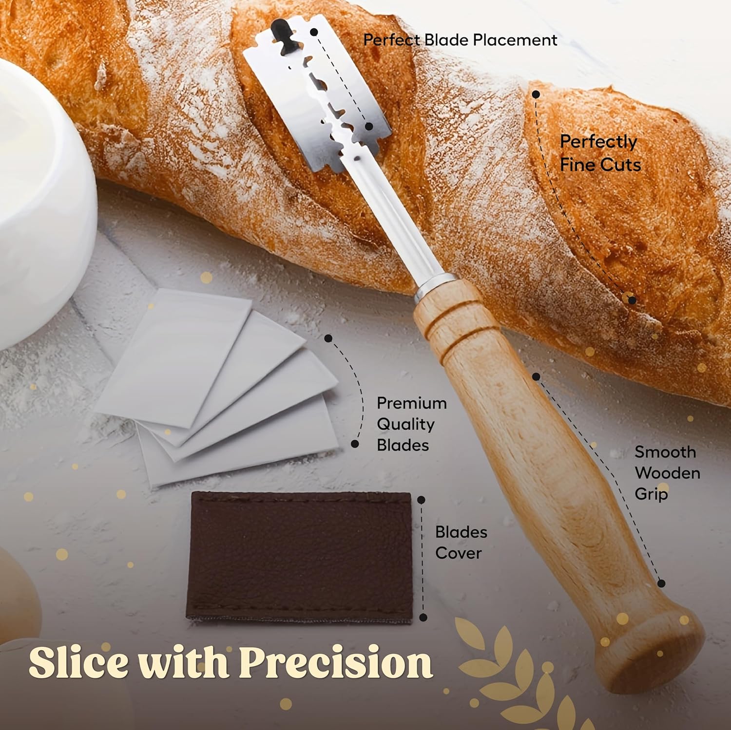 - Artisan Results at Home: Create bakery-quality loaves with beautifully scored crusts using the included lame and precision tools. This banneton basket kit enhances dough texture, supports even fermentation, and helps shape perfect loaves every time — no more sticky mess or uneven rises.