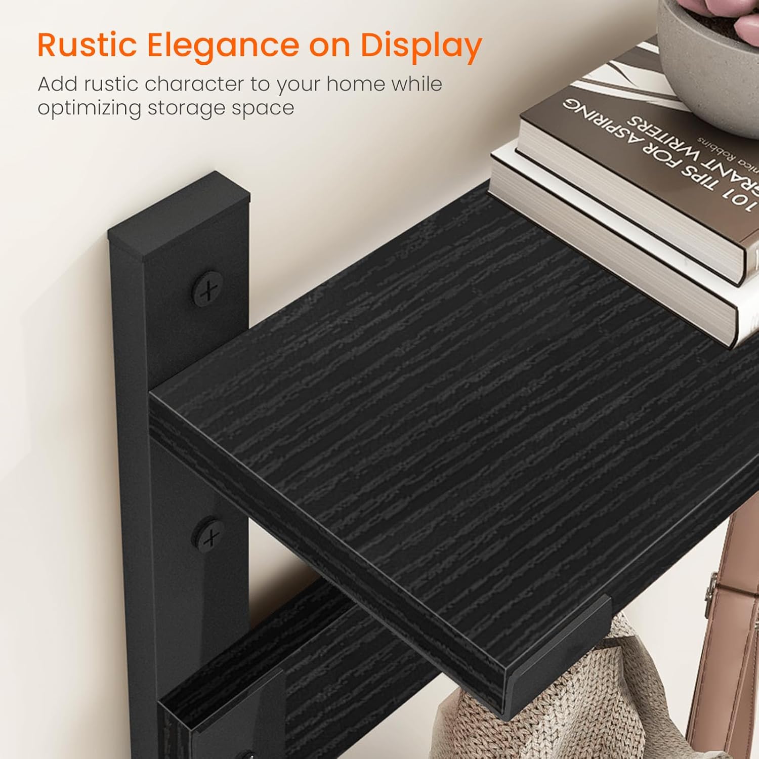 - VERSATILE USES: The black coat hooks with shelf is seamlessly blending with various home decors, from modern to rustic while ensures all your essentials are organized and easily accessible; Ideal for any space needing a blend of storage and style