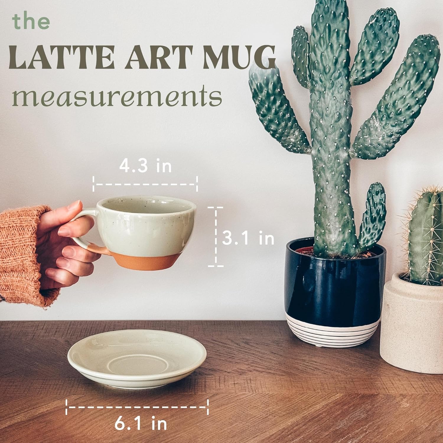 Mora Ceramic Latte Art Mug With Saucer - 10.5 oz, Round Bottom For Perfect Pours - Cafe Cups for Cappuccino, Espresso, Coffee, Tea etc - Porcelain Set for Baristas, Great Gift - Light Matcha