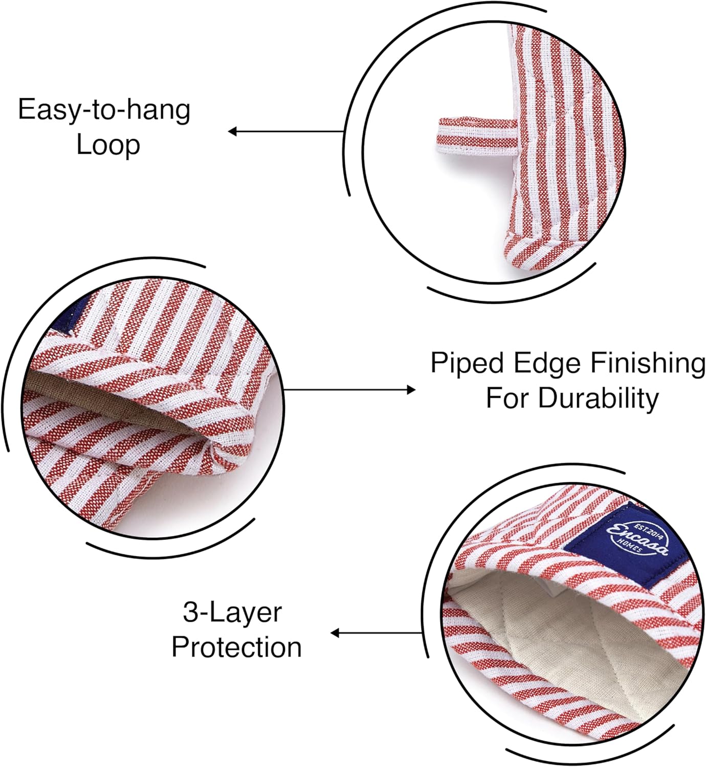 Encasa Homes Long 12"x7" Oven Microwave Hand Gloves Mitts (2 pc Set) for Kitchen Cooking & Baking - Heat Resistant, Thick & Safe, Protection of Hands from Hot Utensils - Ticking Red