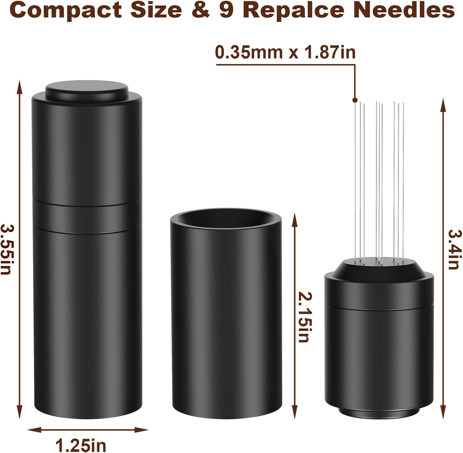 WDT Espresso Distribution Tools Espresso Stirrer Tool WDT Coffee Distributor for Barista Espresso Machine Accessories 9*0.35mm Espresso Grounds Stirrer with Extra 9 Replaceable Needles,Black