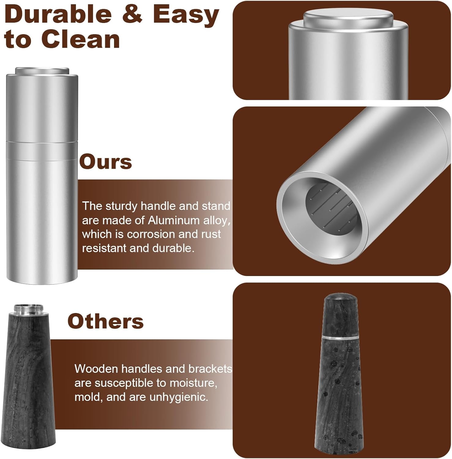- Hygienic and Easy to Clean---The TIVERAIN Espresso distributor tool sturdy handle and stand are made of Aluminum alloy. The steel needle is made of high quality 304 stainless steel, which is corrosion and rust resistant and sturdy.The base adopts hollow design in the middle, can be washed directly, will not accumulate coffee grounds, convenient cleaning and hygienic.