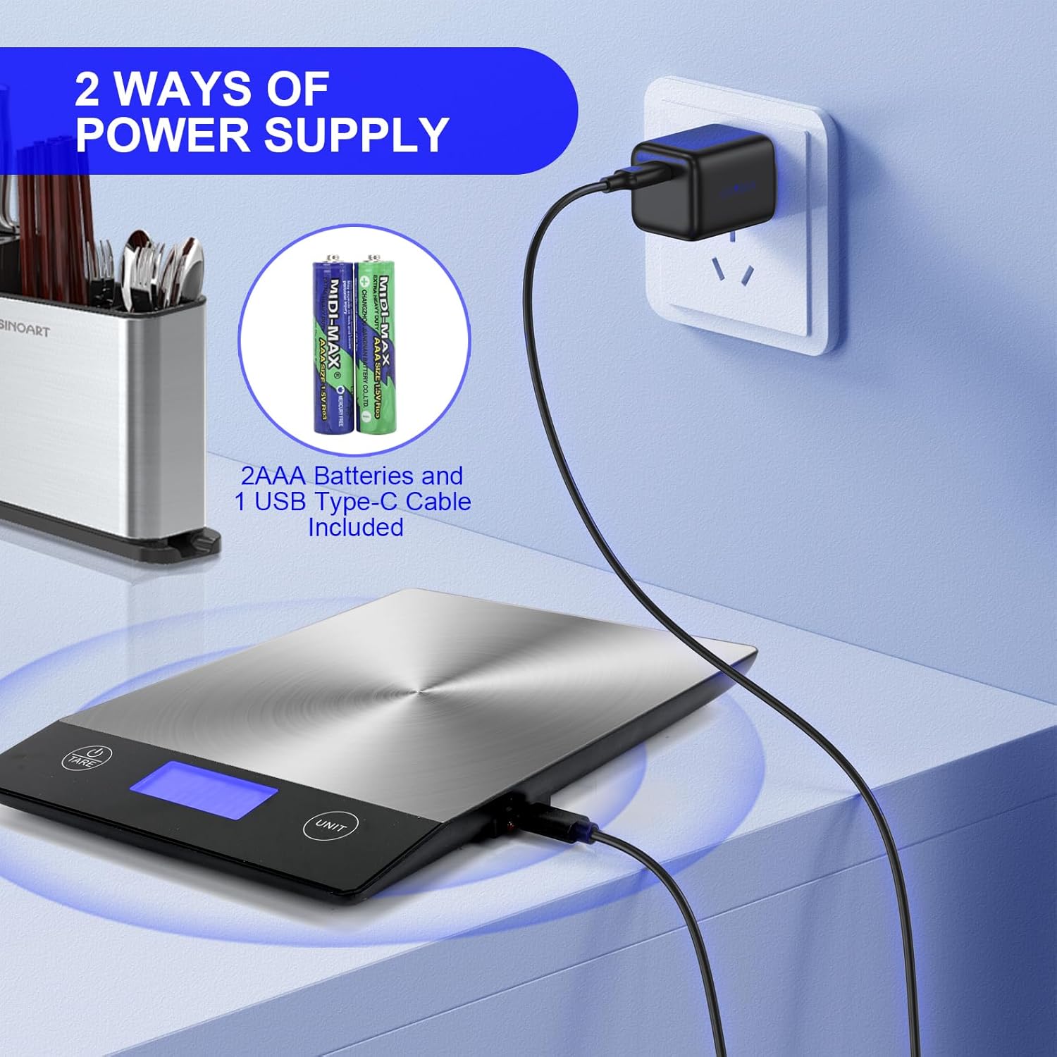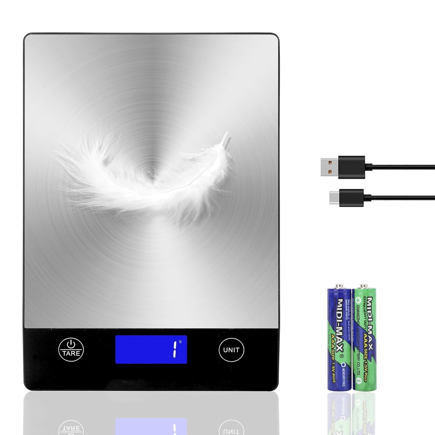 - Multi-Unit Rechargeable Kitchen Scale: This kitchen scale offers 5 commonly used measurement units (grams/kilograms/pounds/ounces/milliliters), with a touchscreen and LCD display for easy use and reading. It comes with rechargeable batteries and a Type-C charging cable for long-lasting power supply. Additionally, 2 AAA backup batteries are included for added convenience.