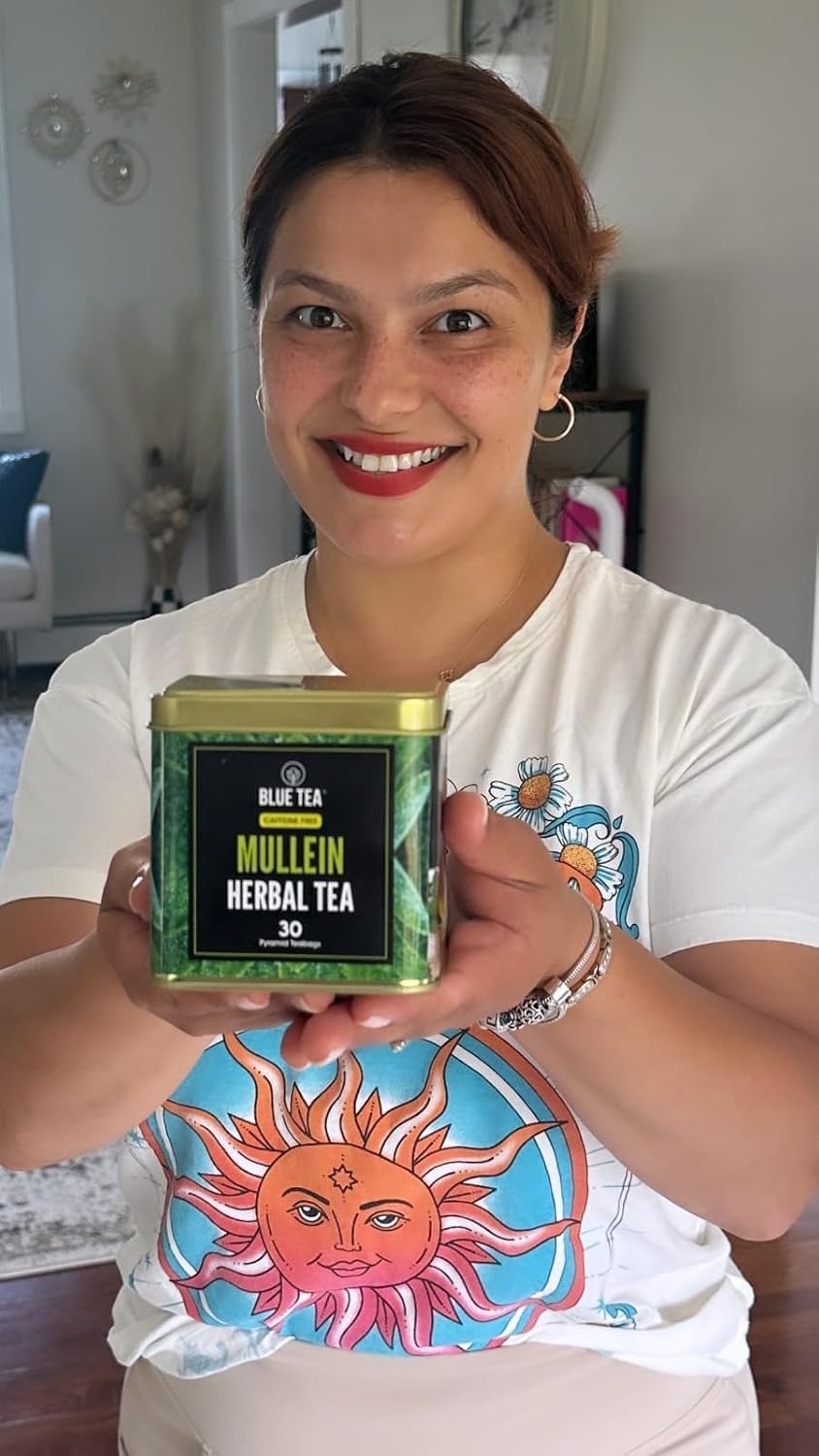 BLUE TEA - Mullein Tea - 30 Count - Pyramid Plant Based Tea Bag | LUNGS DETOX - FOR RESPIRATORY SUPPORT | Herbal Tea - Caffeine Free - Leaf Based - Non-Bitter - Vegan | Ziplock Pack