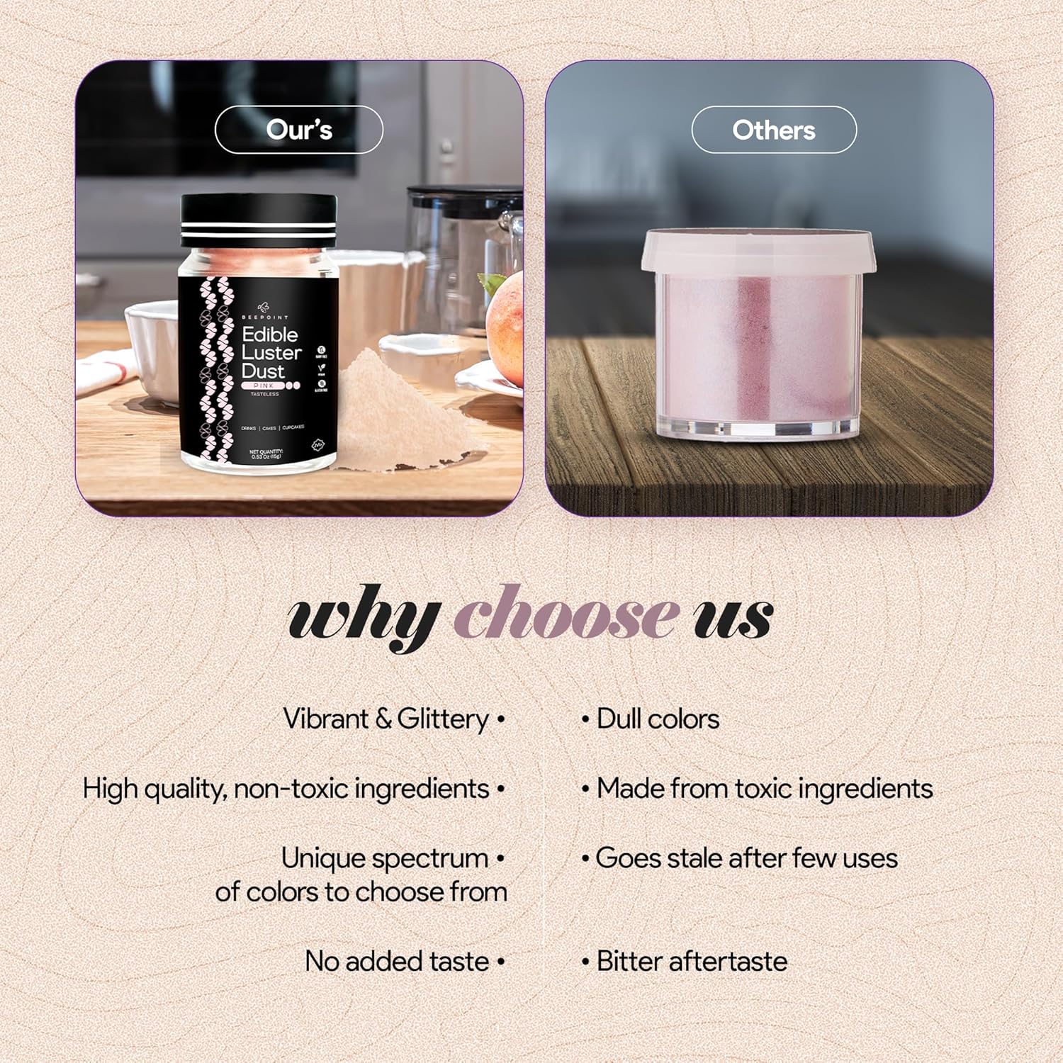 - Effortless Sparkle: Achieve vibrant metallic food glitter edible dust on cakes, desserts, and drinks with our easy-to-use luster powder dust, perfect for both beginners and professionals