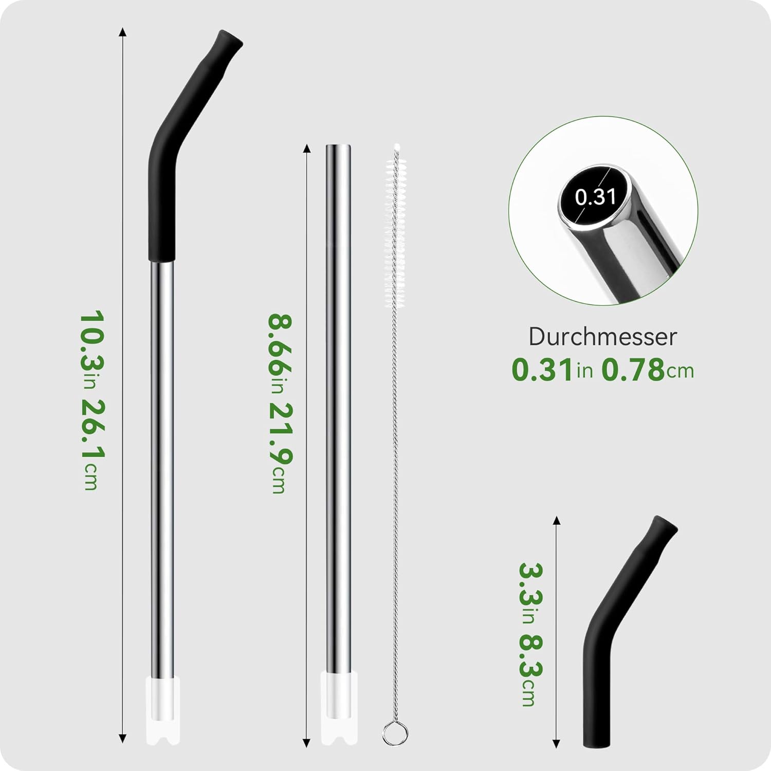 - Material Safety: This straw is made of 18/8 stainless steel material, ensuring safety and durability. The addition of food grade silicone tip makes your use of straws softer and effectively protects your teeth