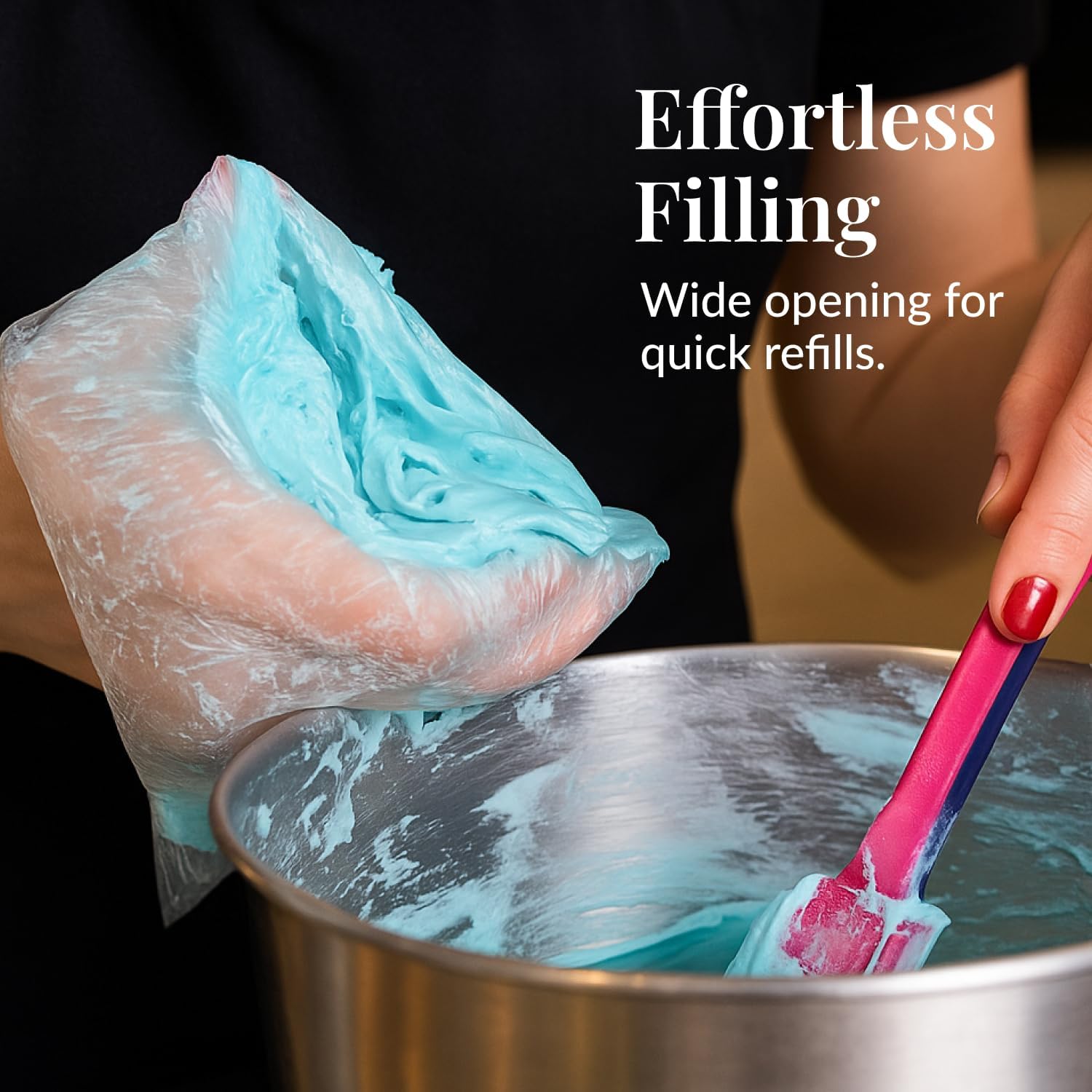- DISPOSABLE PIPING BAGS – These single-use bags ensure a hygienic decorating experience and save time by eliminating cleanup, making them perfect for busy kitchens, events, or quick baking projects.
