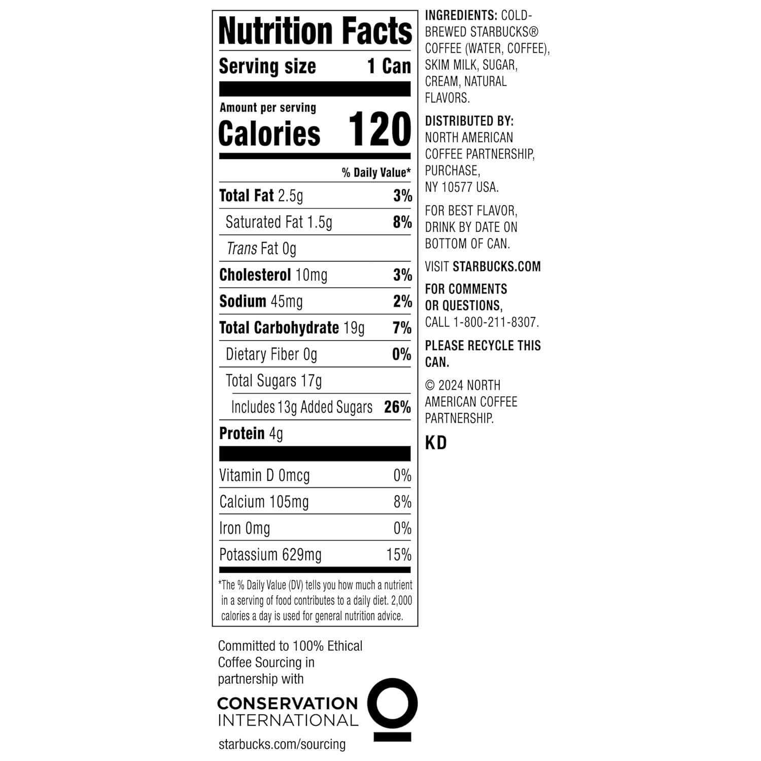 - Starbucks Cold Brew Iced Coffee Drink is committed to 100% Ethical Coffee Sourcing in partnership with Conservation International