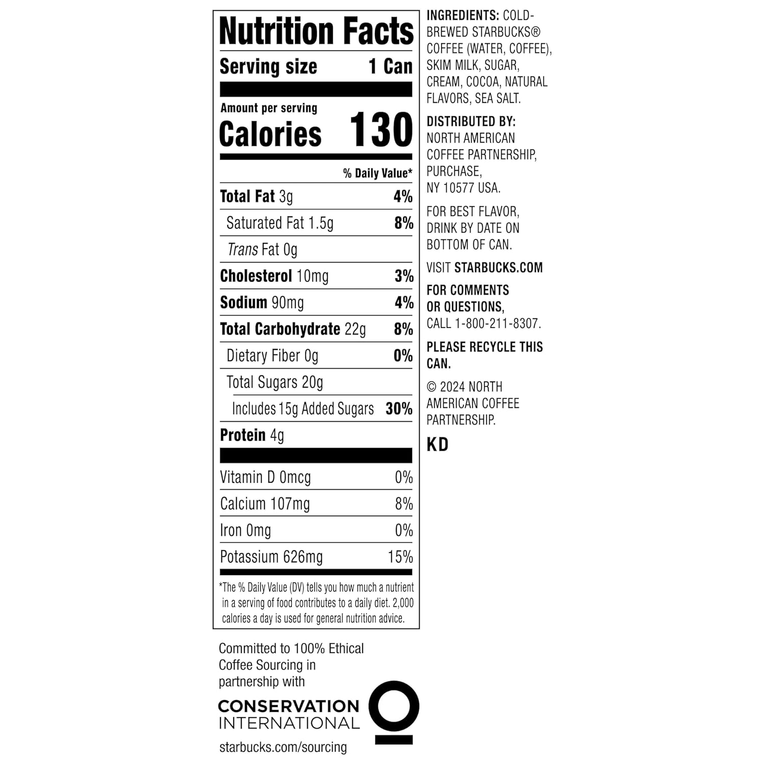 - Starbucks Cold Brew Iced Coffee Drink is committed to 100% Ethical Coffee Sourcing in partnership with Conservation International