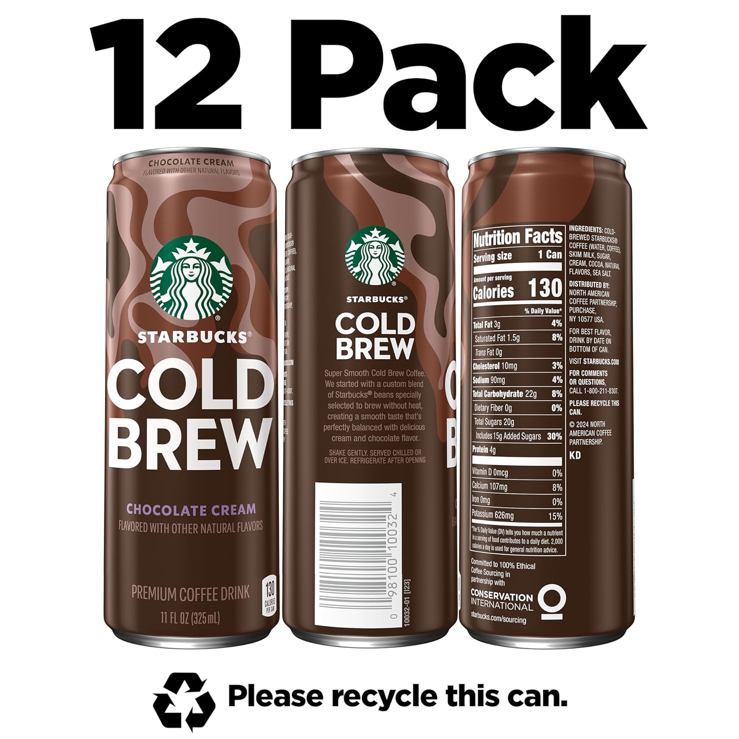 - Includes 12 (11 fl oz) cans of Starbucks Cold Brew Coffee, Chocolate Cream, Premium Coffee Drink, Iced Coffee