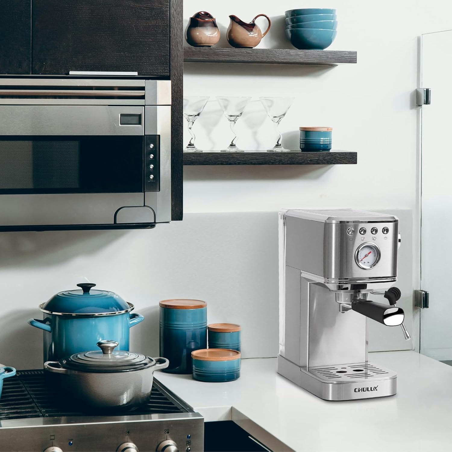 CHULUX Slim Espresso Machine with Milk Frother Steam Wand, 20 Bar Professional Italian Pump Semi Automatic Espresso Coffee Machine for Home Cappuccino & Latte Maker