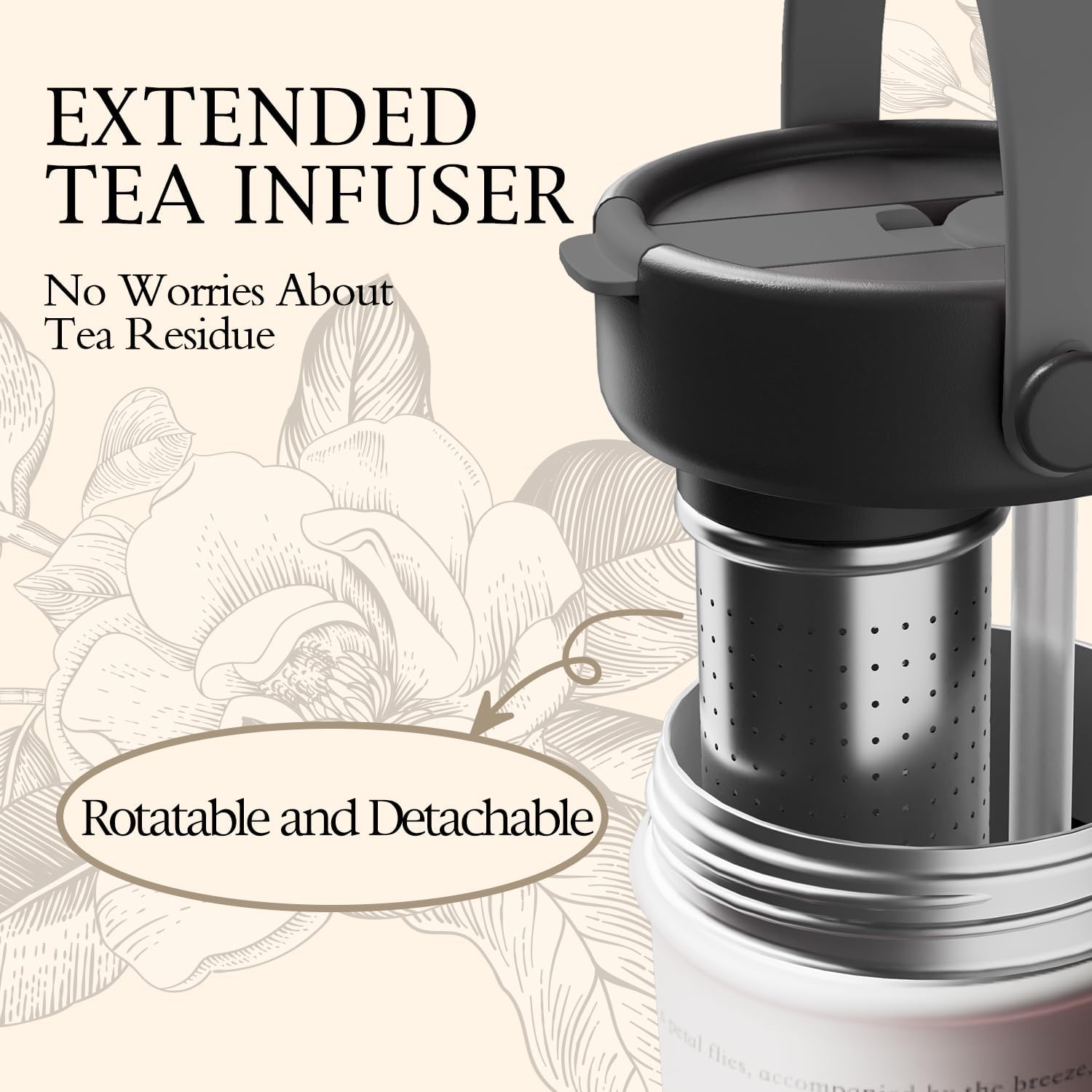 - INFUSE YOUR DAY WITH INNOVATION: Brew your favorite teas or coffee effortlessly with the integrated infuser, and enjoy on-the-go convenience with a foldable straw and leak-proof design. Its sleek handle ensures effortless portability, while the car cup holder fit makes it the perfect choice for modern explorers
