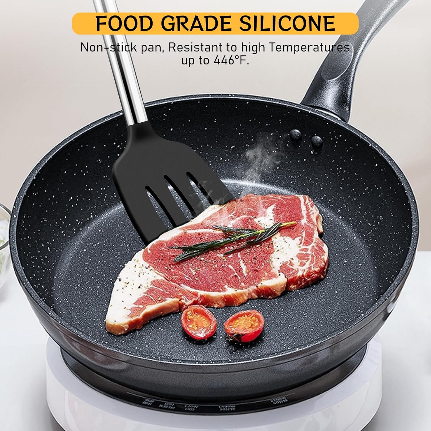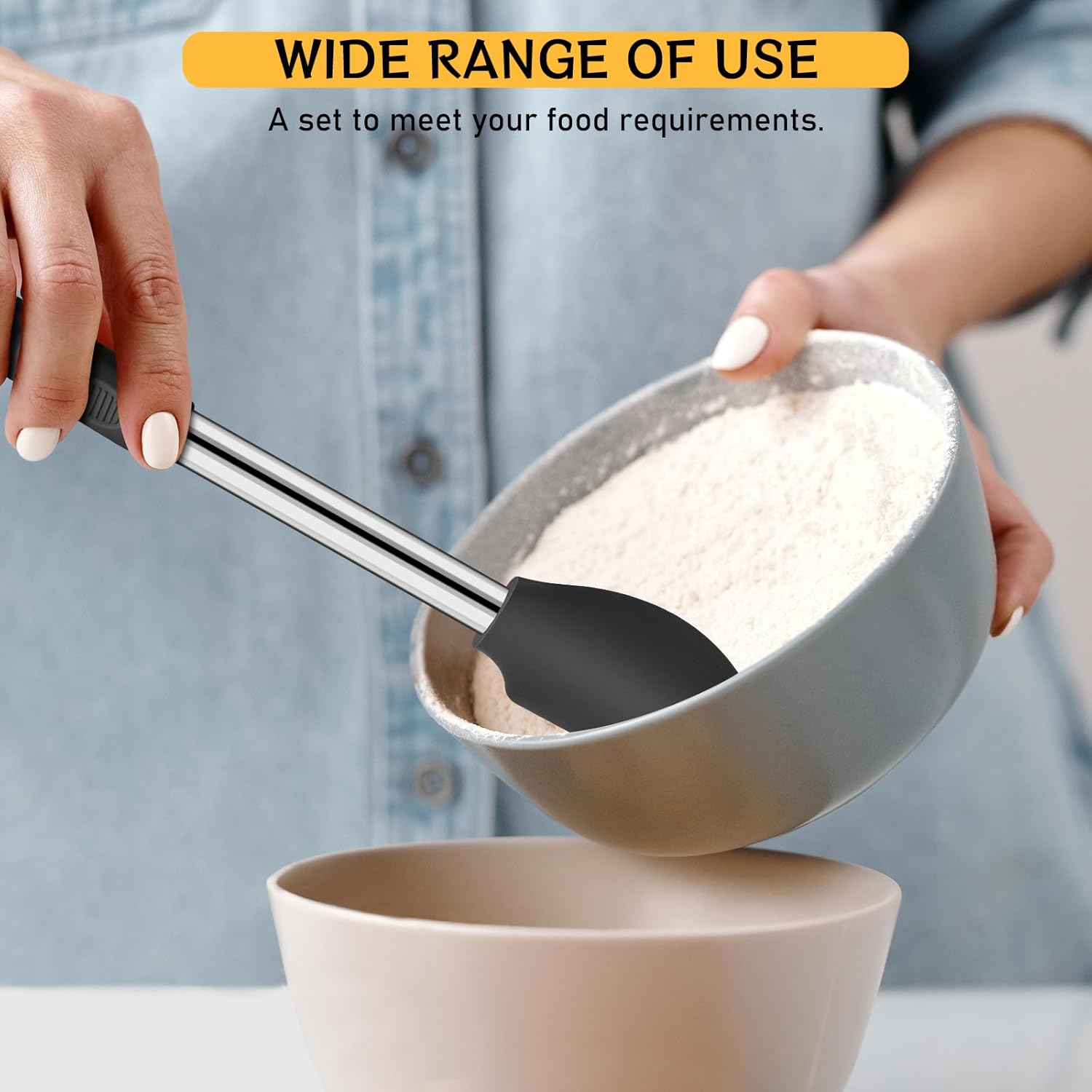 - FOOD GRADE SILICONE SPATULA: This silicone spatula set is suitable for cooking, baking, and mixing. Flip eggs or pancakes, make cakes, scrape butter, etc.