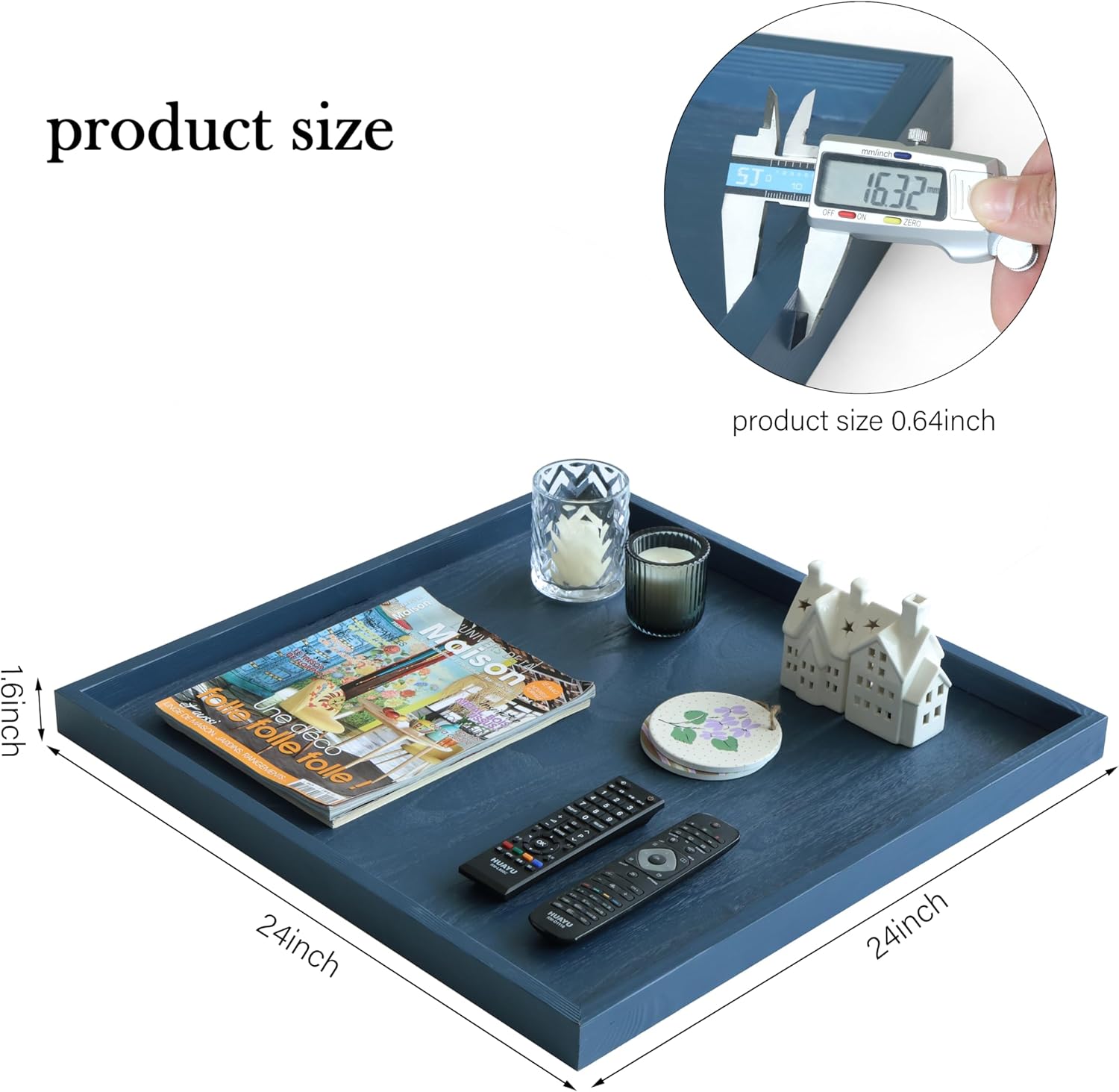 - 🌷 KING SIZE OTTOMAN TRAY - the dimension is 24 x 24 x 1.6 inches. Perfect size for as serving tray, decorative tray, ottoman tray and coffee table alternative to hold drinks, snacks, books, or decor items; serve as a convenient serving area, use it to hold appetizers, drinks, or even a small buffet setup.