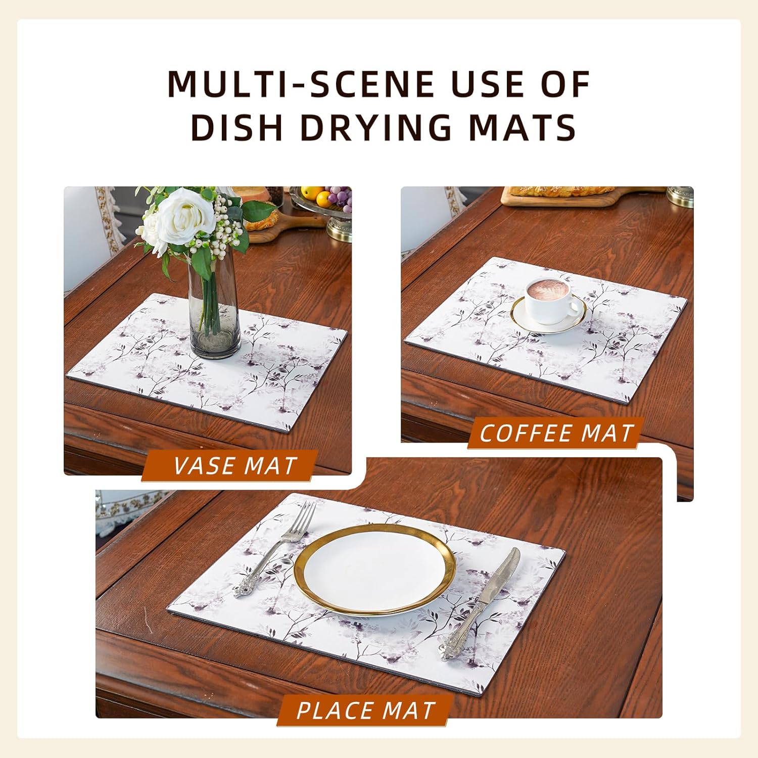 - Pattern Designs: Our dish drying mats come in a wide variety of patterns, suitable for a variety of different scenarios: coffee bar, kitchen, bathroom and more!