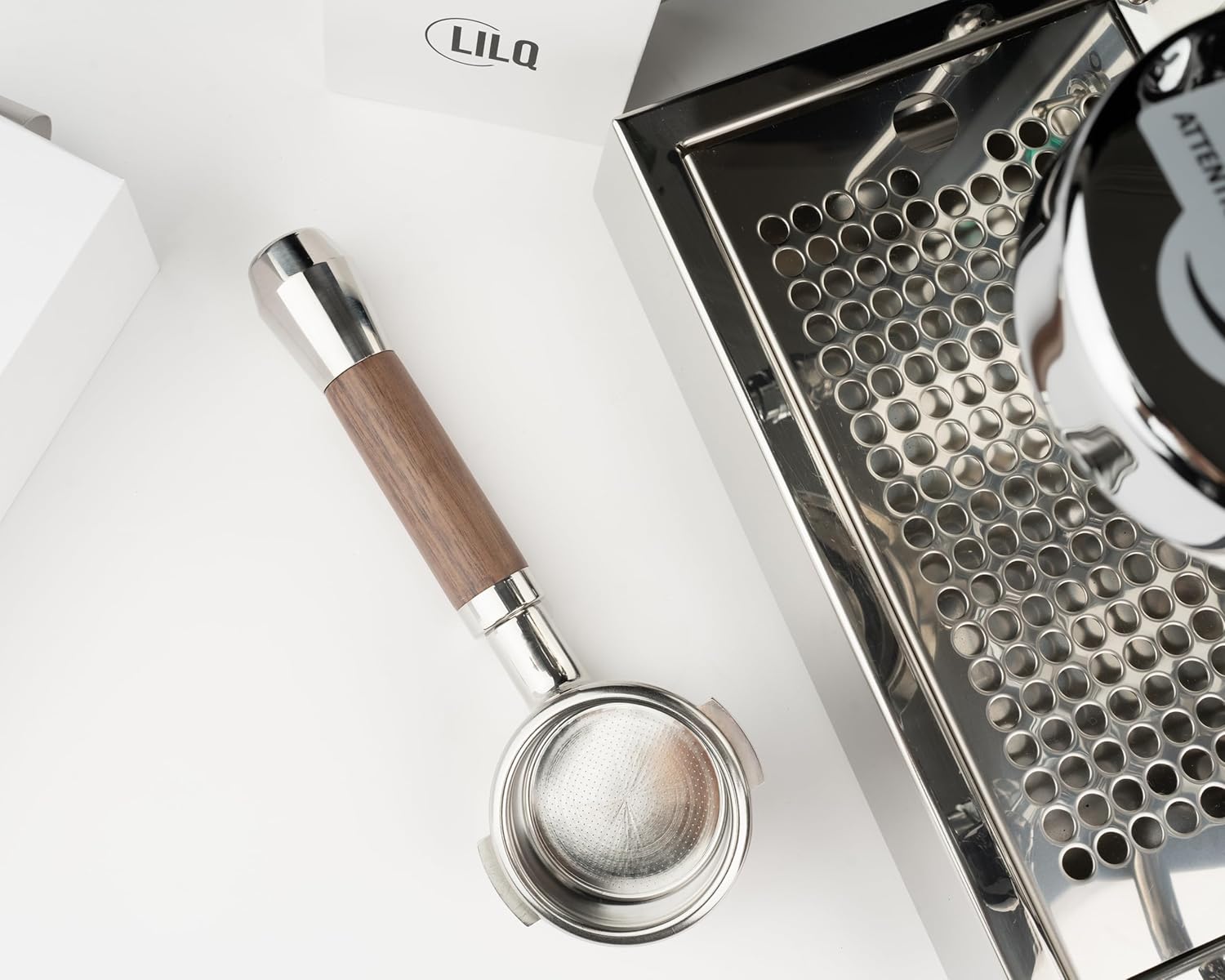LILQ 58mm Bottomless Naked 2 Ears Portafilter Compatible with E61 Grouphead Machines– Includes 18–20g Basket (WalnutV2Fusion, 58mm For E61)