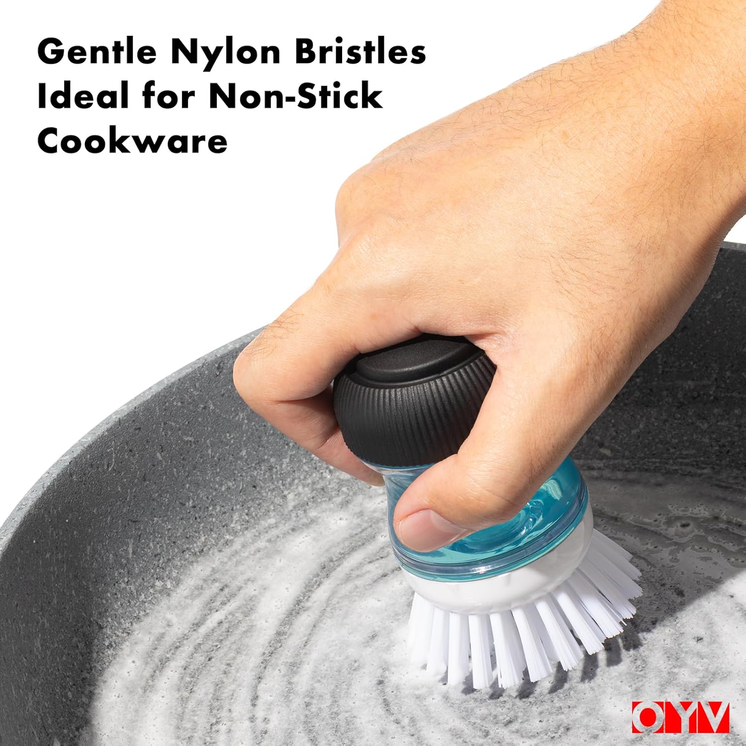 - EASE OF CLEANING & USE: OYV palm brush dish scrubber with soap dispenser cleans well, and is easy to refill and dispense