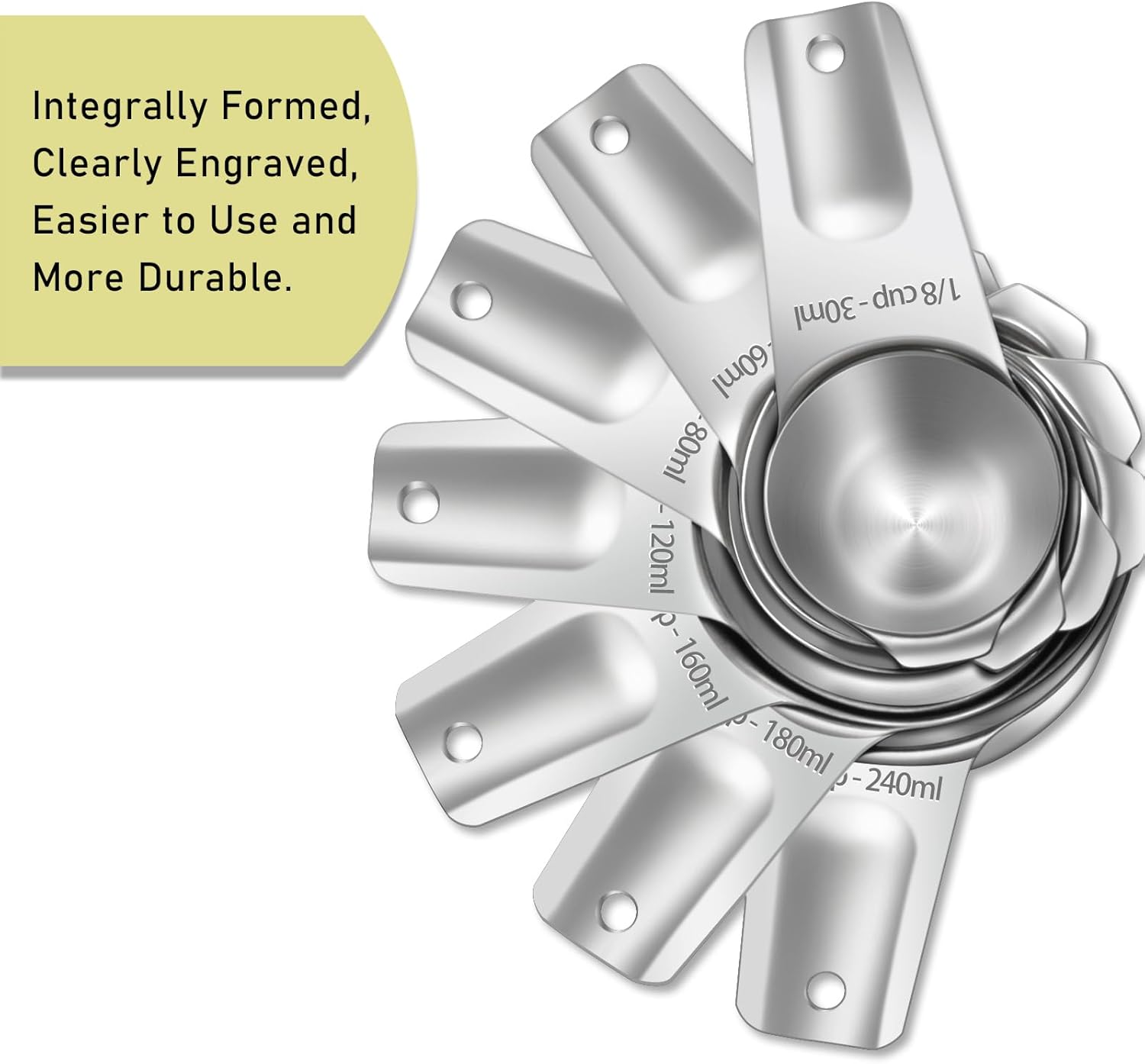 - 【Durable】The integrated molded 304 stainless steel measuring cup is designed for sturdiness and durability, with a solid construction that can withstand regular use without breaking or warping.