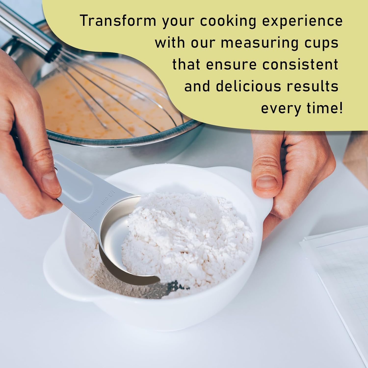 - 【Clear Marking】The handle is engraved with the metric and US marking (80 ml | 1/3 CUP) and will not wear out with further use. The cup also has an embossed marking, so you can measure 1/6 cup of liquid or powder