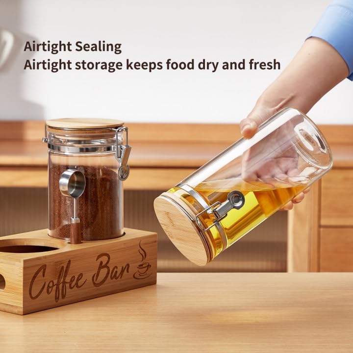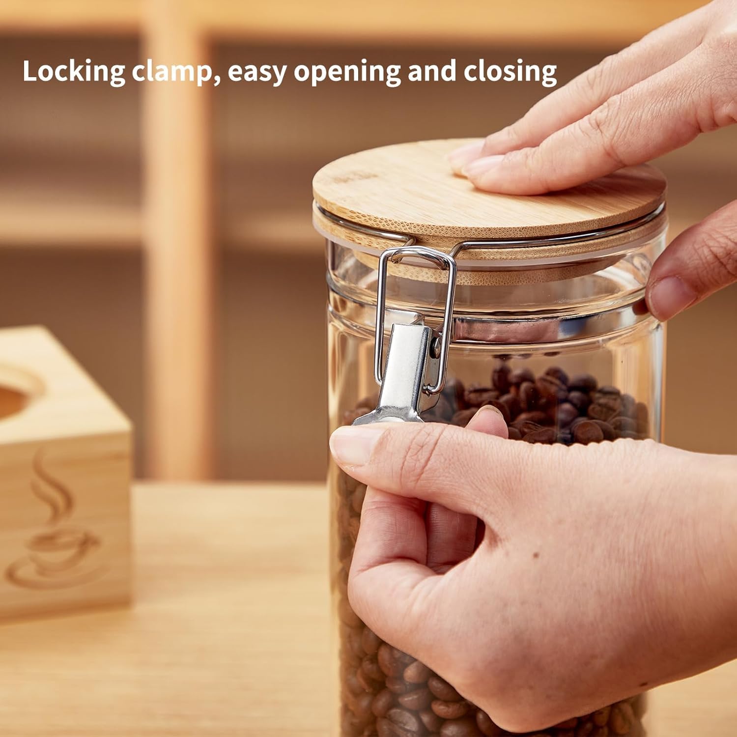 - PREMIUM QUALITY MATERIAL: Made of premium borosilicate glass with a 50 fluid ounces. capacity, these coffee jar are thicker and more durable for safe long-term food storage. Clear glass design is easy to view the contents inside. Designed with a large opening for easy access to food.