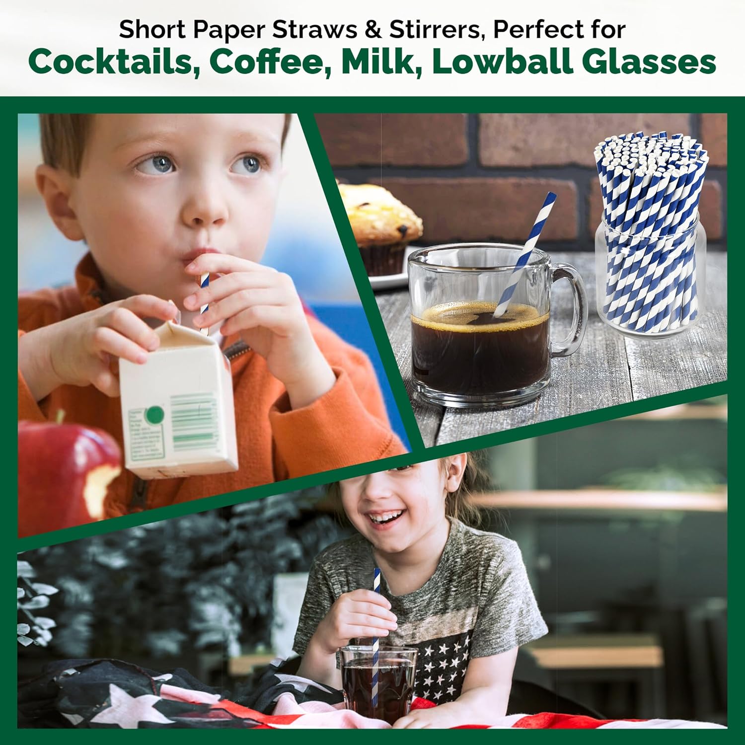 5.75 inch Navy Blue Short Paper Cocktail Straws & Stirrer Sticks 500 Counts - for Bars and Restaurants