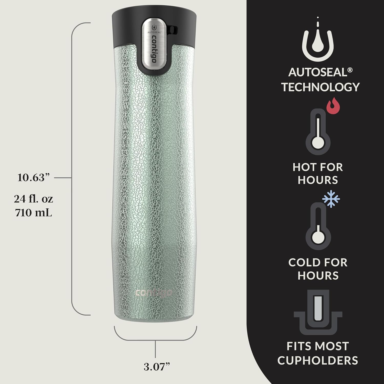 Contigo AUTOSEAL West Loop Vacuum-Insulated Stainless Steel Travel Mug with Easy-Clean Lid 24 oz Crystal Agave