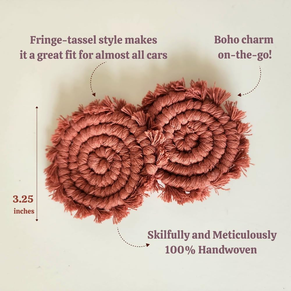- Handmade Boho Macrame Car Coaster Set: Elevate your car's interior with our meticulously crafted Coaster For Car Set, adding a touch of style and functionality to your daily drives. Cup coasters for car.