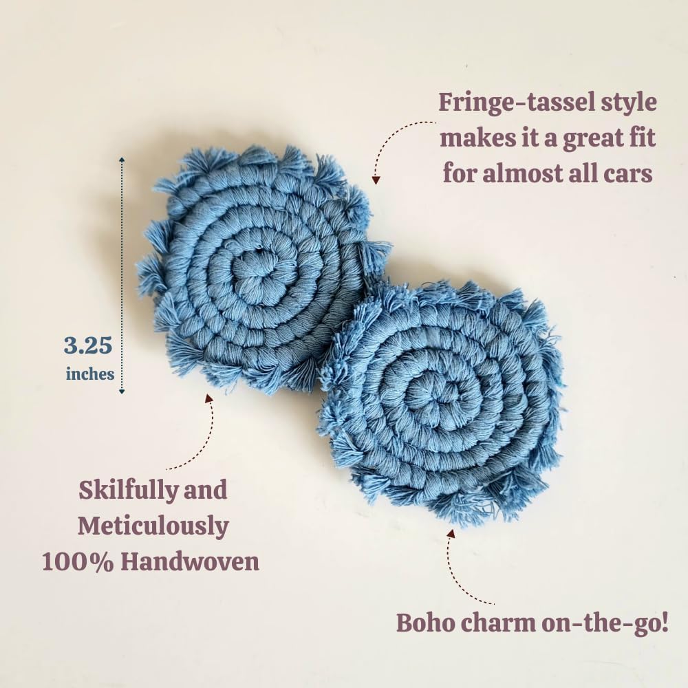 - Handmade Boho Macrame Car Coaster Set: Elevate your car's interior with our meticulously crafted Coaster For Car Set, adding a touch of style and functionality to your daily drives. Cup coasters for car.