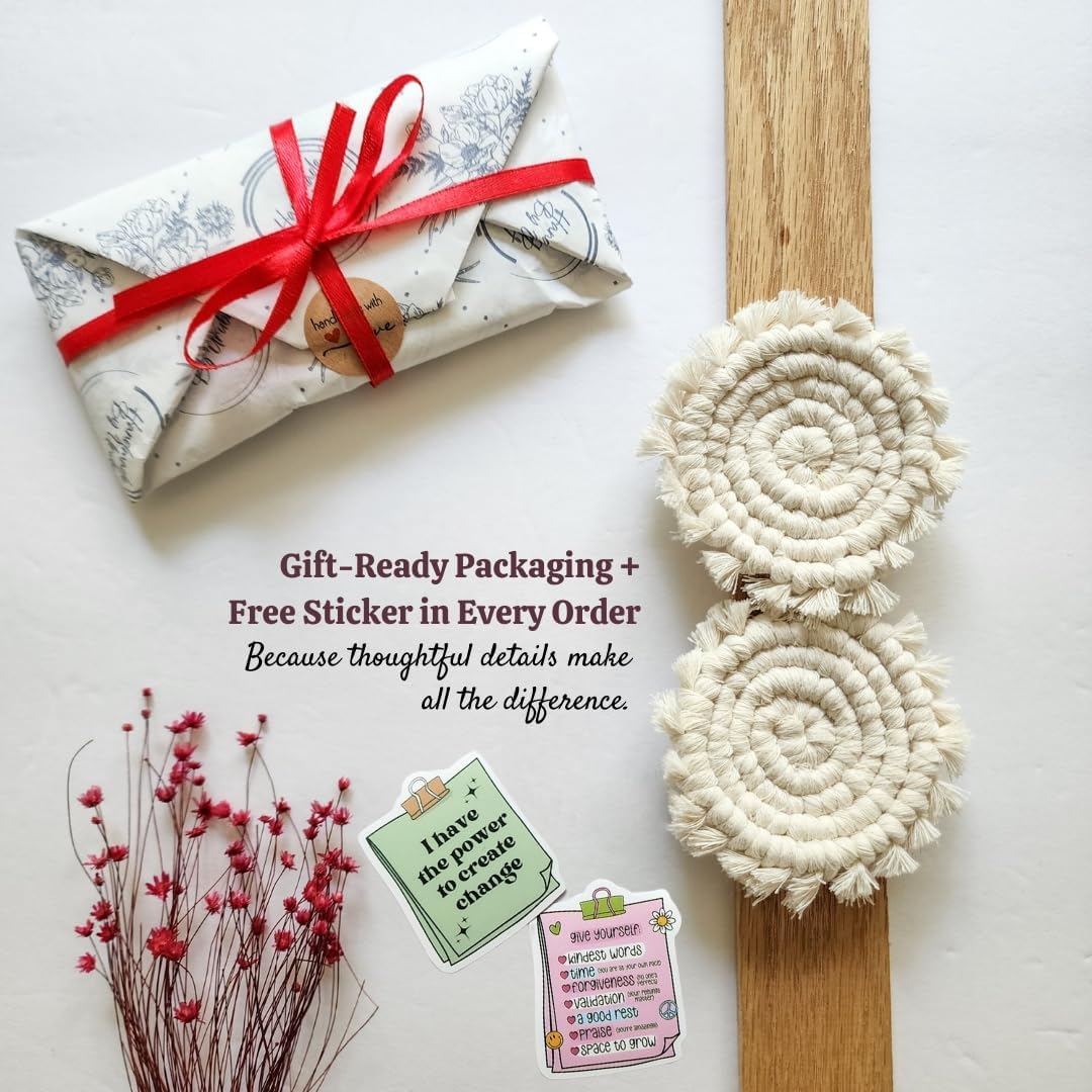 - Handmade Boho Macrame Car Coaster Set: Elevate your car's interior with our meticulously crafted Coaster For Car Set, adding a touch of style and functionality to your daily drives. Cup coasters for car.