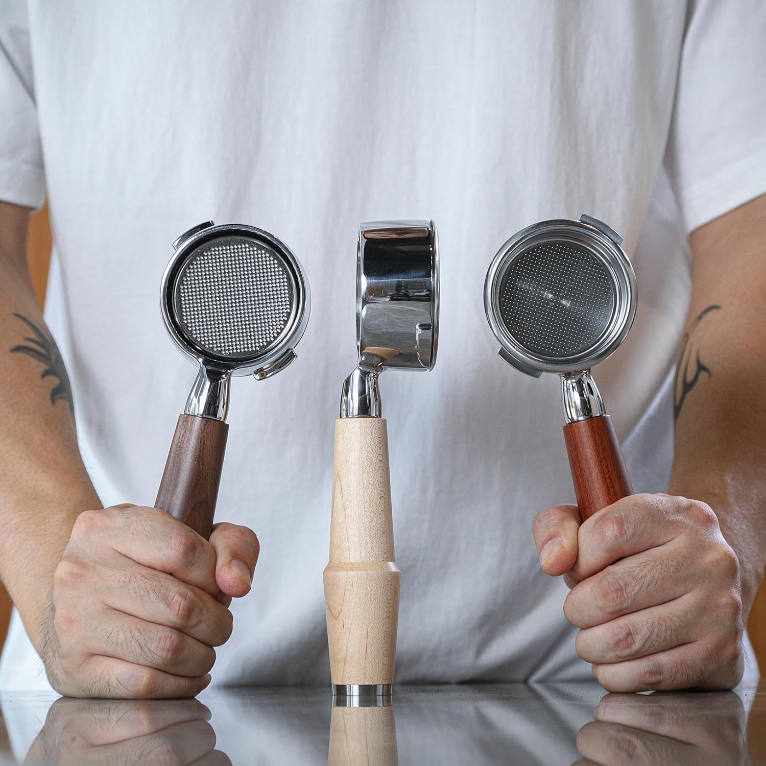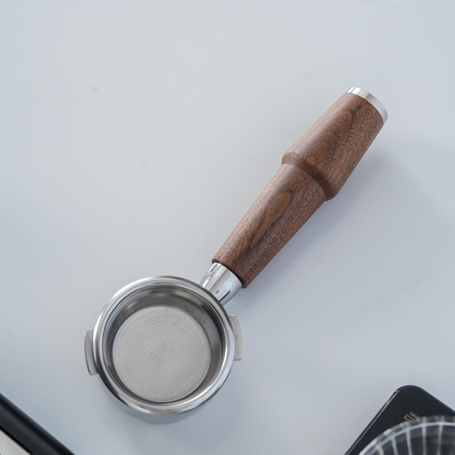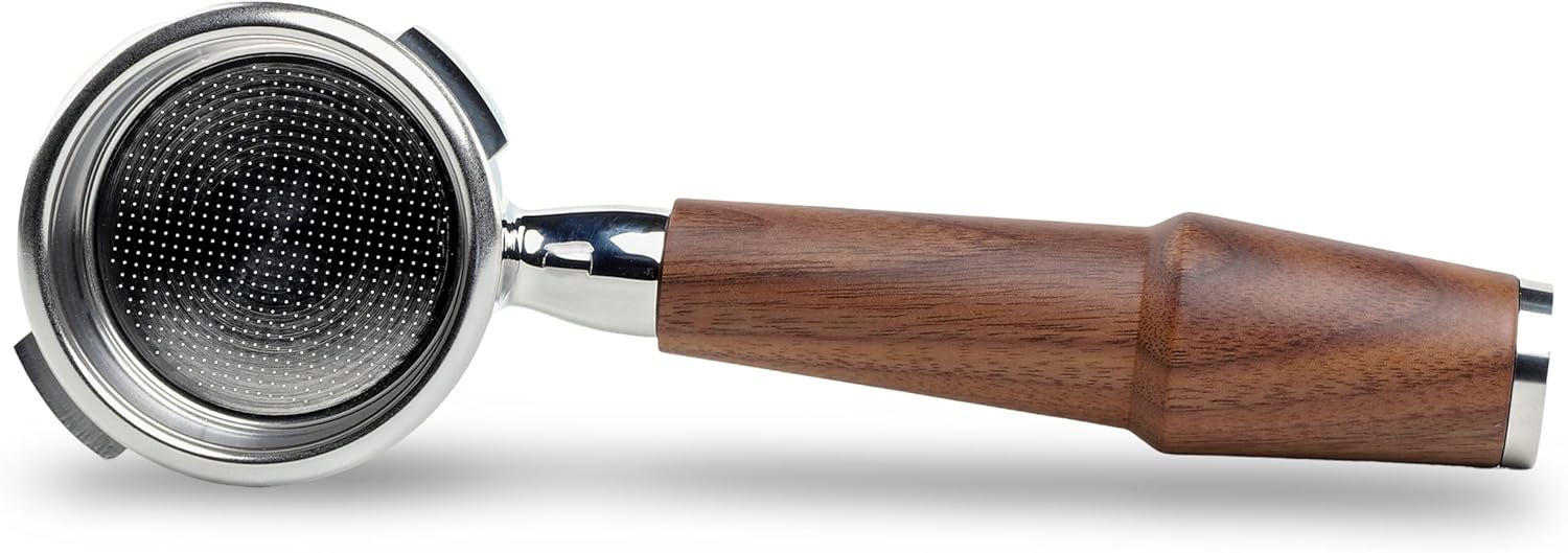 - Each package contains a stainless steel bottomless head, a premium walnut handle, and a 18-21gr filter basket. Moreover, portafilter is compatible with 58 mm baskets from other brands such as IMS and VST