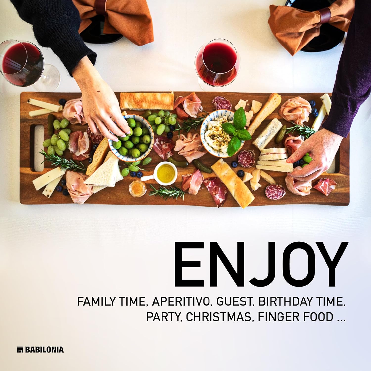 - ✅ PURE ACACIA WOOD : Wooden serving platter Babilonia have many years of experience in the wood industry for cutting board, serving tray, bathtub tray. the choice of the wood and the quality of the grain is always our major target.