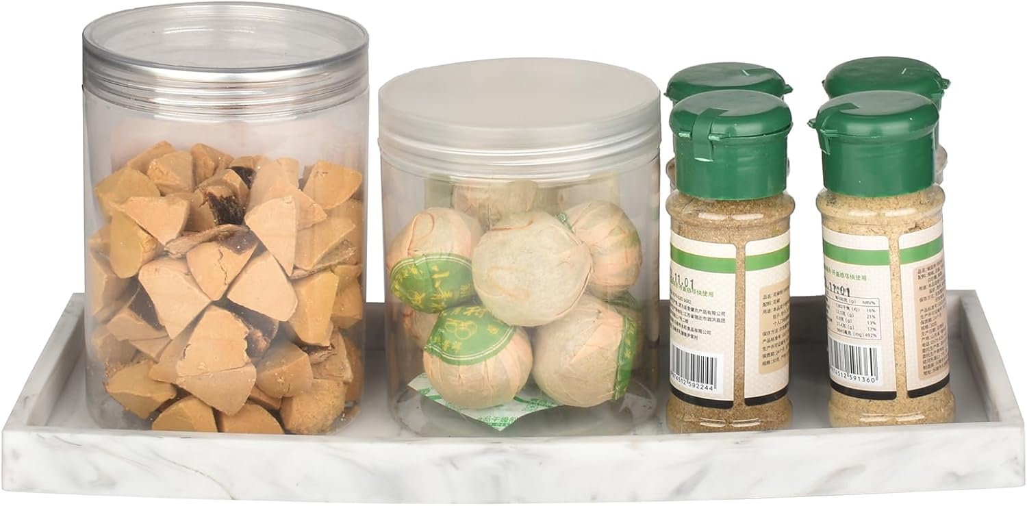 DNC Silicone Bathroom Tray for Counter, 2PC 11.8" Vanity Tray for Countertop, Kitchen Sink Soap Tray for Dish Holder Dispenser Toilet Tank Desk Organizer Marble White