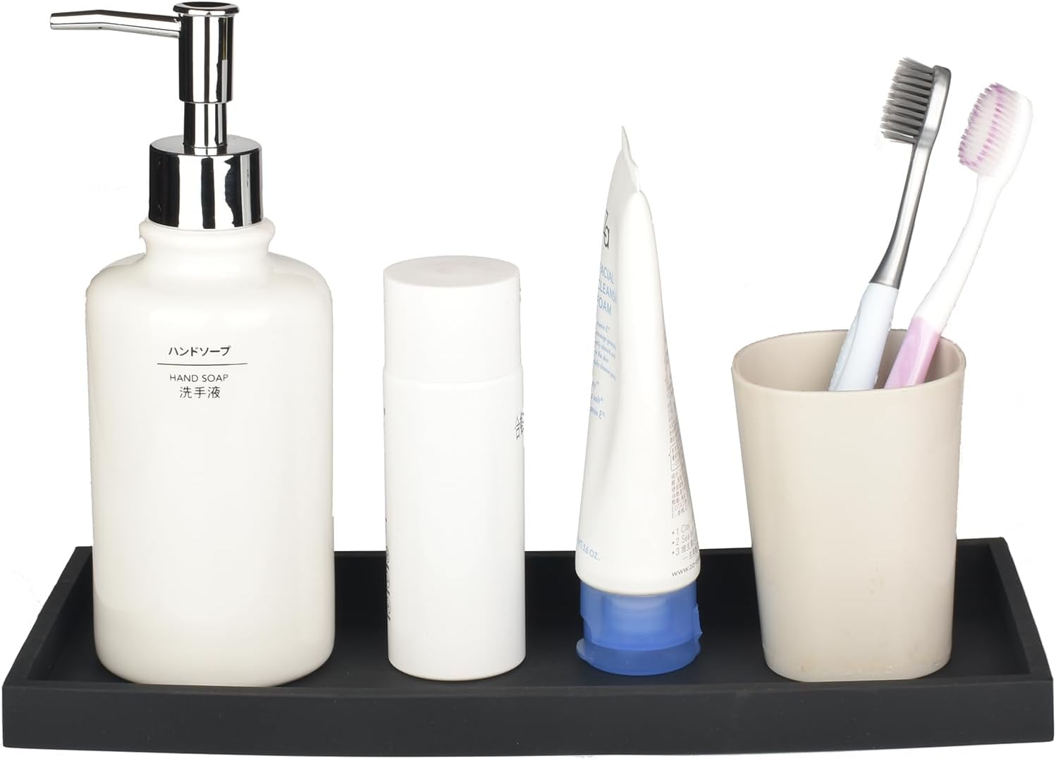 DNC Bathroom Vanity Tray for Counter, 2PC 11.8" Silicone Kitchen Sink Soap Tray for Countertop Dish Holder Dispenser Toilet Tank Desk Organizer Black