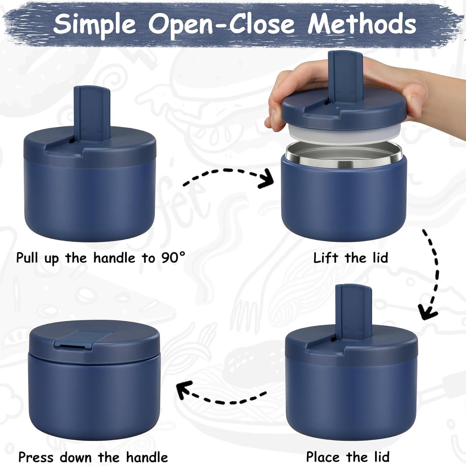 - Use Tips and Notes: In order to keep food hot or cold for a longer time, we recommend preheating/precooling with hot water/ice water for 5~10 minutes before putting food or soup into the food jar, and then put the food in. Note that when you disassemble the cover for cleaning and then reinstall it, be sure to lift the top of the cover before installing it. Otherwise, it will not be firm!!!
