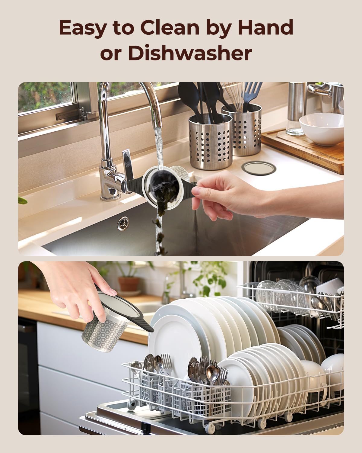- Easy-to-Use: This 304 stainless steel tea steeper for loose tea is simpler to clean than metal tea sieves or cloth tea bags, either by hand or dishwasher. The silicone lid and handle offer a comfortable touch, allowing easy lifting of the tea filter strainer or lid.