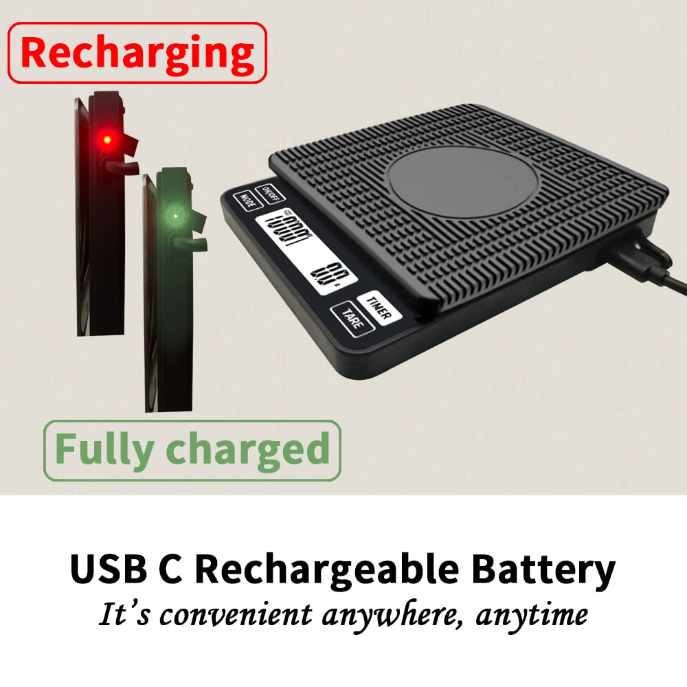 Espresso Scale, Small Coffee Scale, Rechargeable and Water-Resistant, Auto Timer & Auto Tare, Coffee Brewing Scale, 2000g/0.1g, Espresso Scale with Handy Case,70 oz / 0.01 oz, in Silver