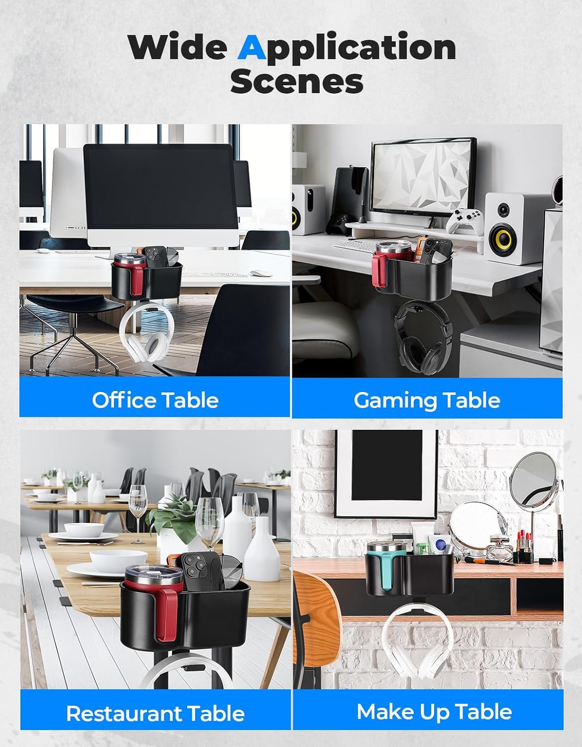 - Fits Most 18-32 oz Cups:Suitable for desks with a thickness of 0.5 to 1.5 inches, there's ample room for 18-32 oz bottles, as well as additional space to store items like pens, phones, pencils, markers, rulers, erasers, and many other desktop accessories