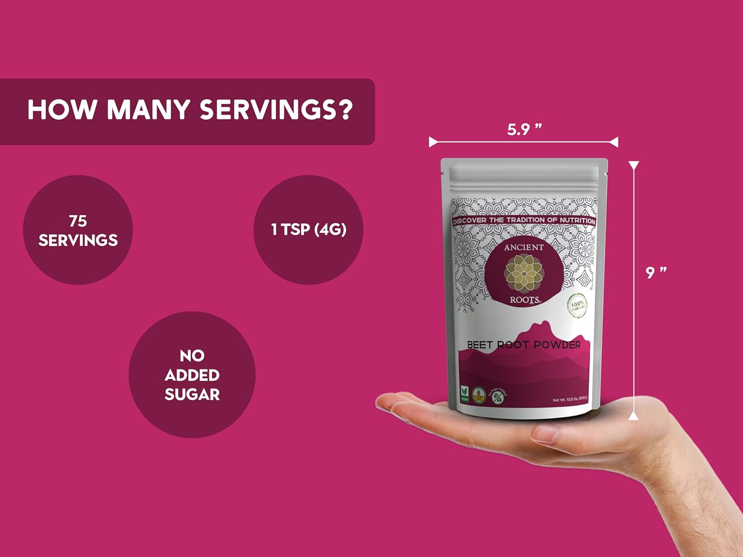 Ancient Roots Beet Root Powder - Freeze - Dried, All-Natural, No Sugar Added, Heart Health Support, Help Boost Stamina Naturally, Natural Food Coloring, Beets, Bulk Size 10.5 Ounces (75 Servings)