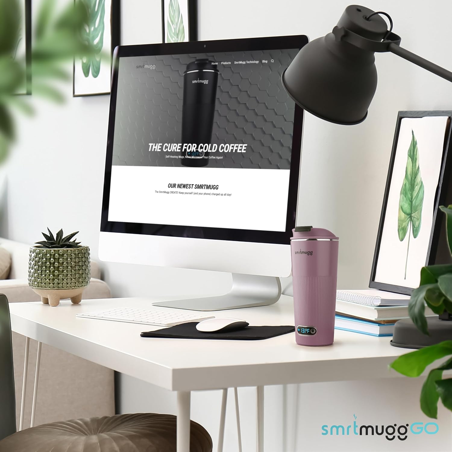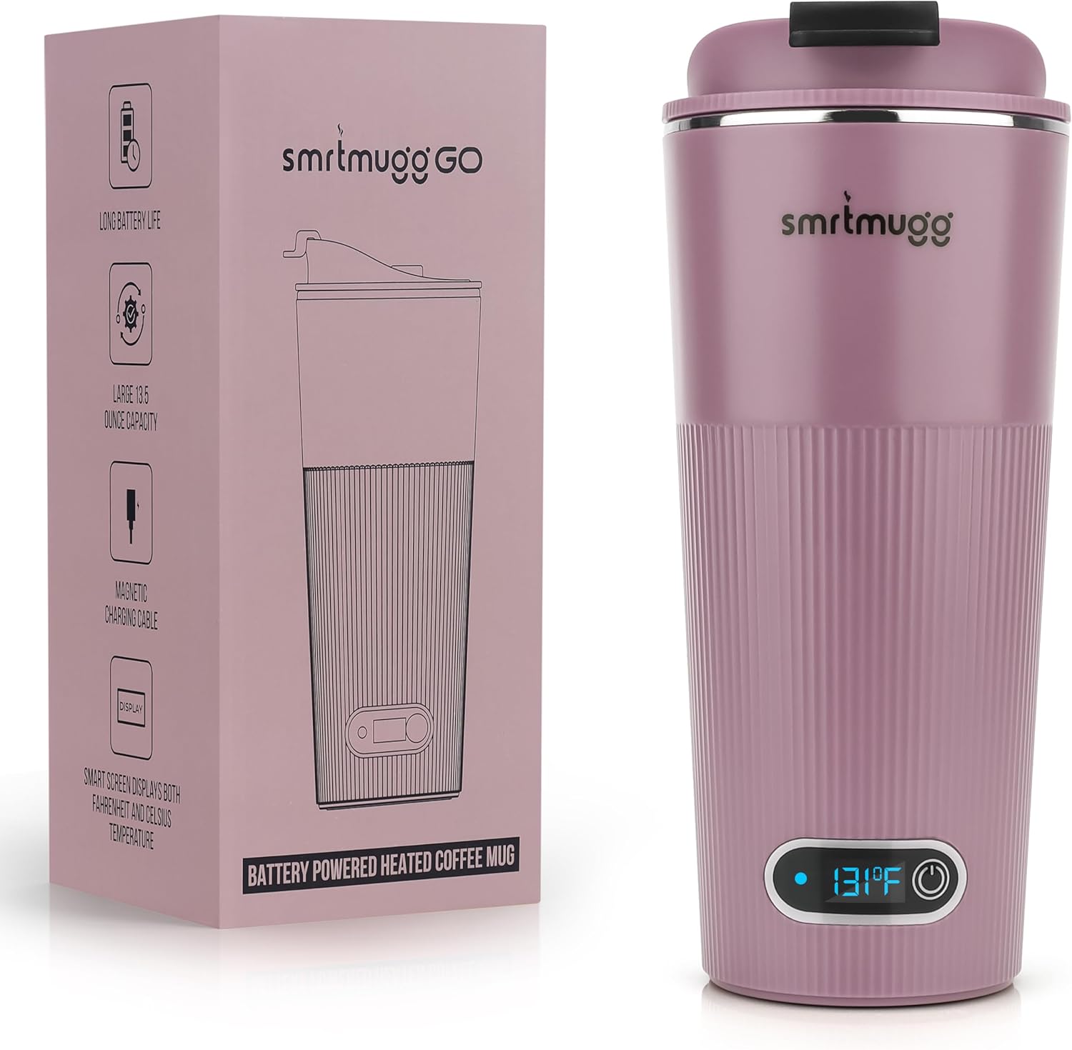 GO Heated Coffee Mug, Travel Mug, 13.5 OZ. Smart Mug, Battery Powered Heated Coffee Mug, Great for Coffee and Tea, Snap on Magnetic Charging Cord, New and Improved (Lilac)