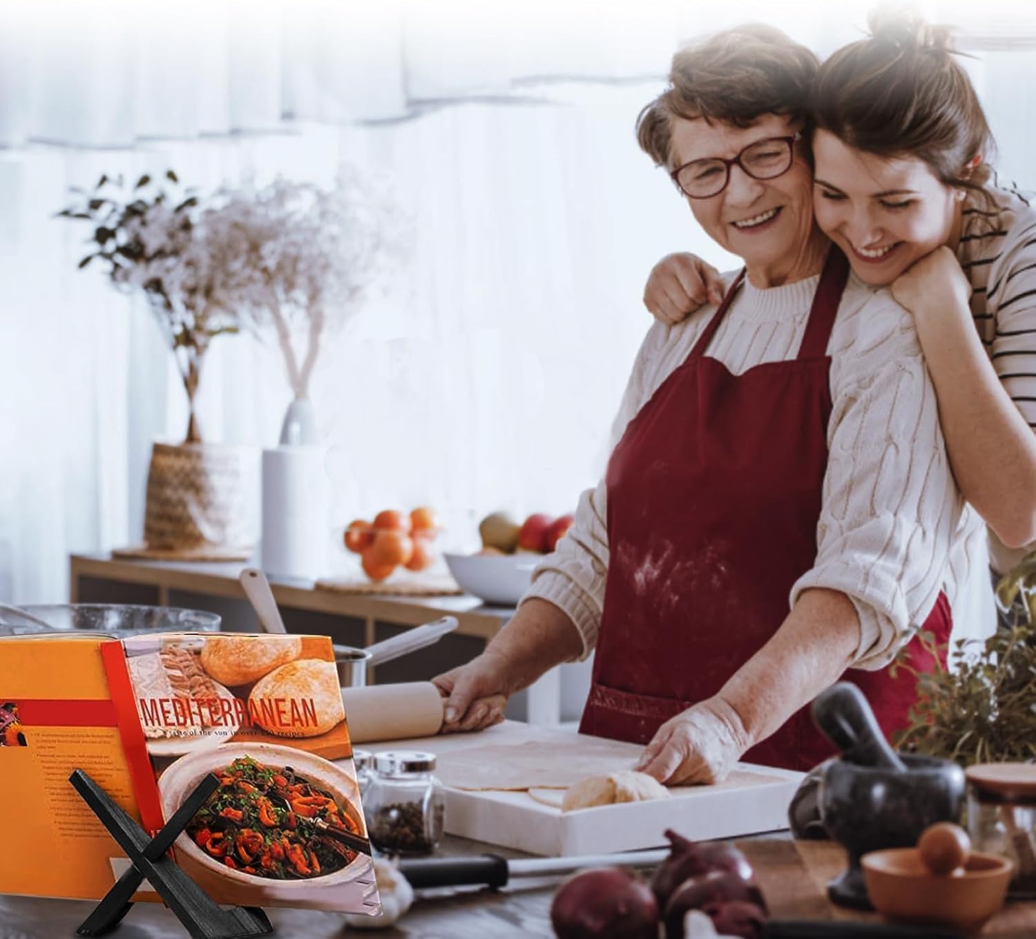 - Sturdy: The cookbook holder is made of natural and high-quality solid wood, which is lighter and sturdier than bamboo. The wood is carbonized to show a beautiful and clear wood grain; all edges are smooth and comfortable through finely sanded. The cross-type assembly design is flexible, compact and stable in structure that doesn't take up too much counter space.