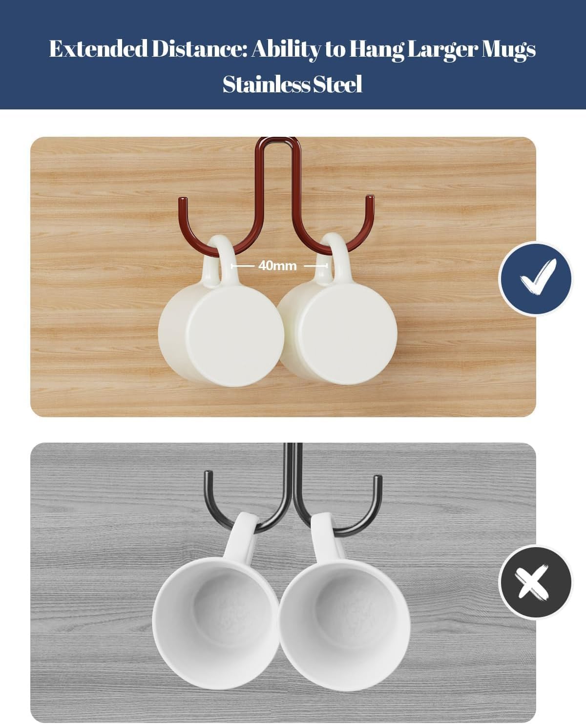 - Reasonable spacing: With a redesigned structure, the under cabinet mug holder has a more concise design and increased spacing between two cups, allowing for hanging larger diameter cups without overcrowding between the hooks.