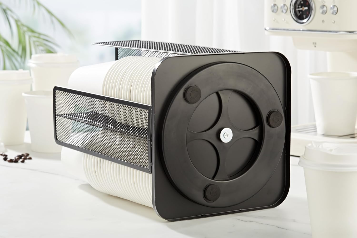 - Rotating Design: With a 360-degree rotating base, for easy access to cups from any angle, making it convenient for busy environments.