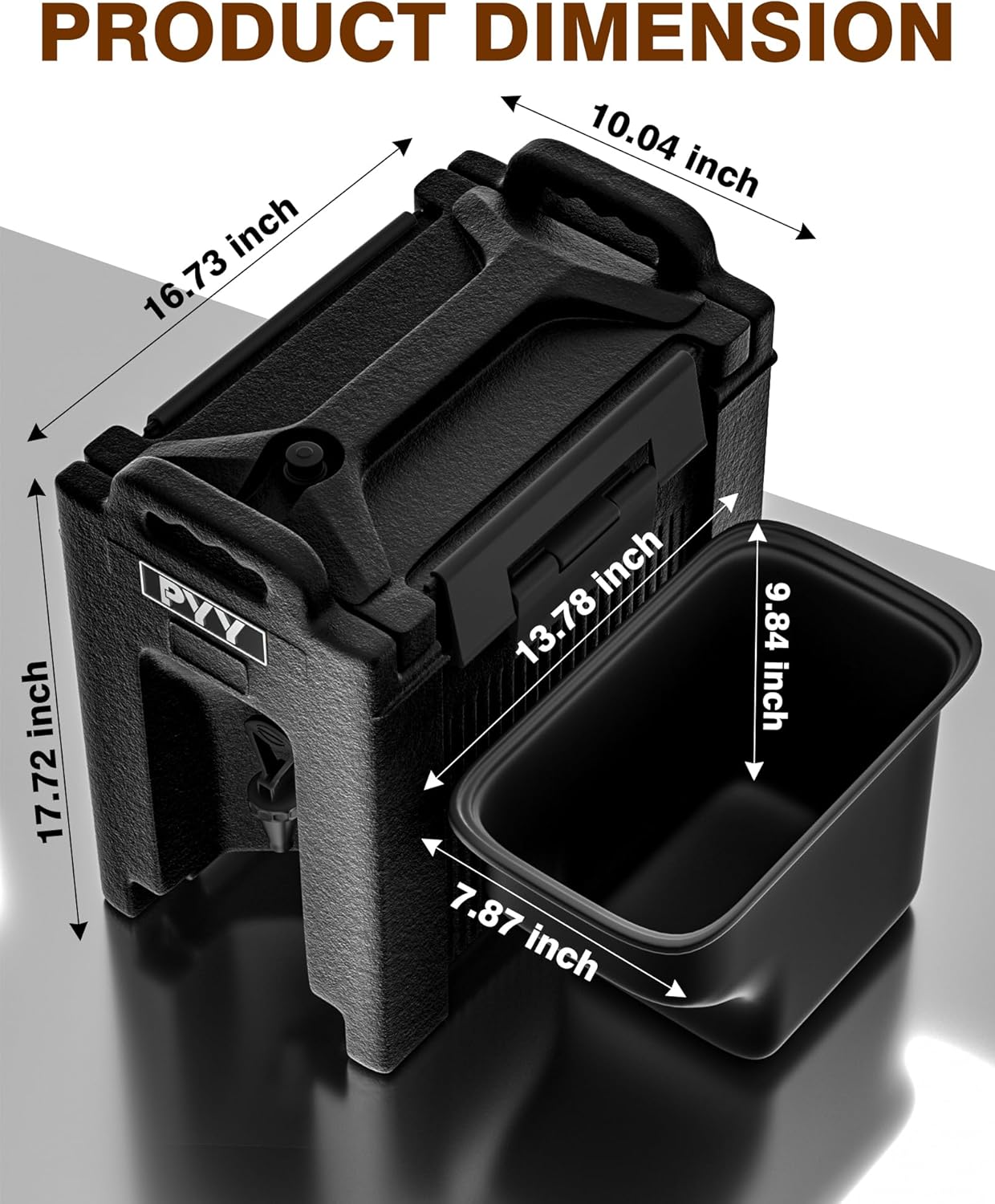 - VERSATILE APPLICATIONS:Perfect for various settings, our large insulated coffee dispenser measures 16.7*10*17.7 inchs with a 2.5-gallon (9.5 liters) capacity. Ideal for storing beverages like ice juice, iced coffee, hot milk, hot tea, and hot chocolate. Widely applicable in coffee shops, bars, small bars, restaurants, and excellent for outdoor picnics and camping.