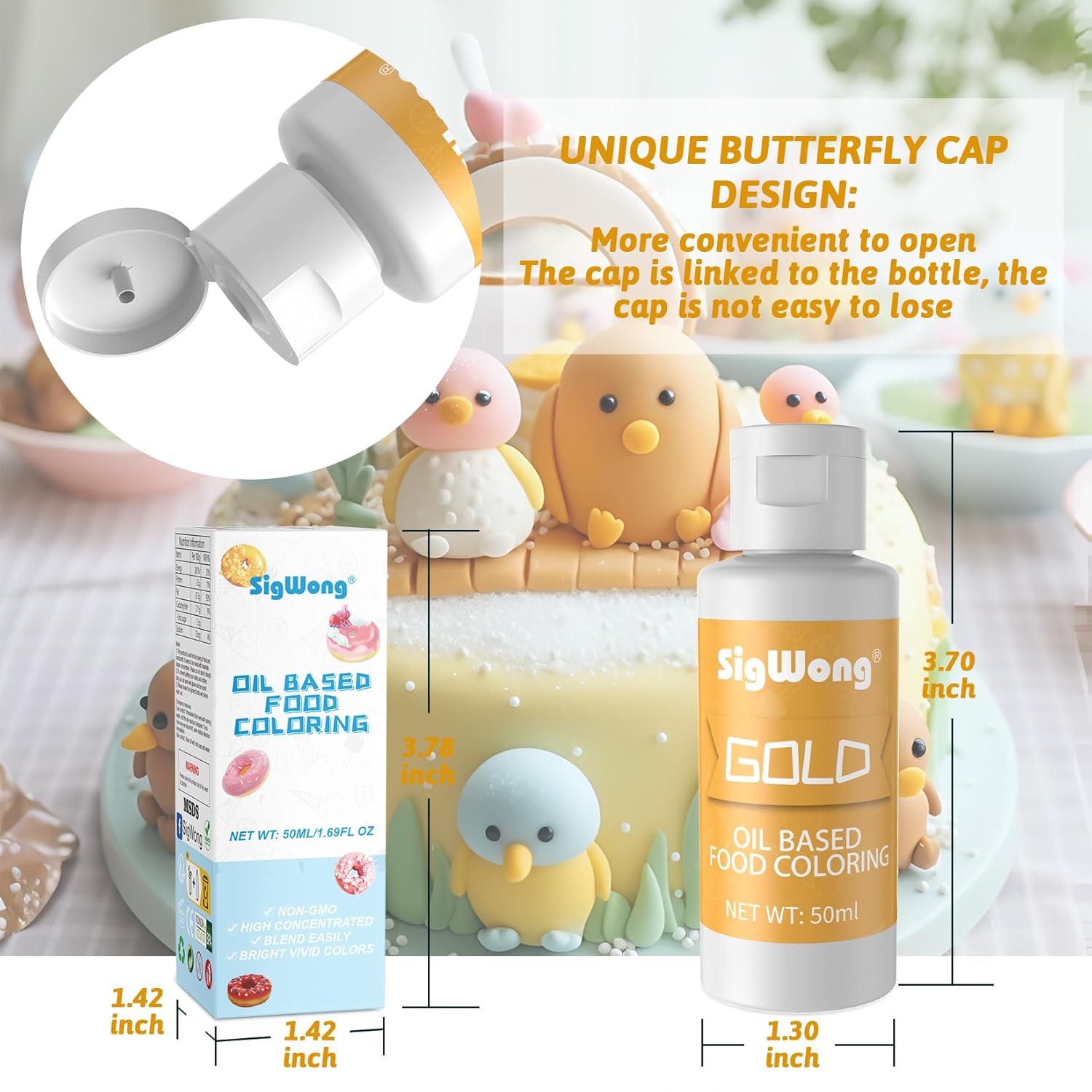 Oil Based Food Coloring for Chocolate - 50ml Gold Upgraded Edible Oil Based Food Dye for Cake Decorating, Baking, Candy Melts, Cookie, Icing Frosting, Fondant, Meringues - 1.69 Fl.Oz Bottles