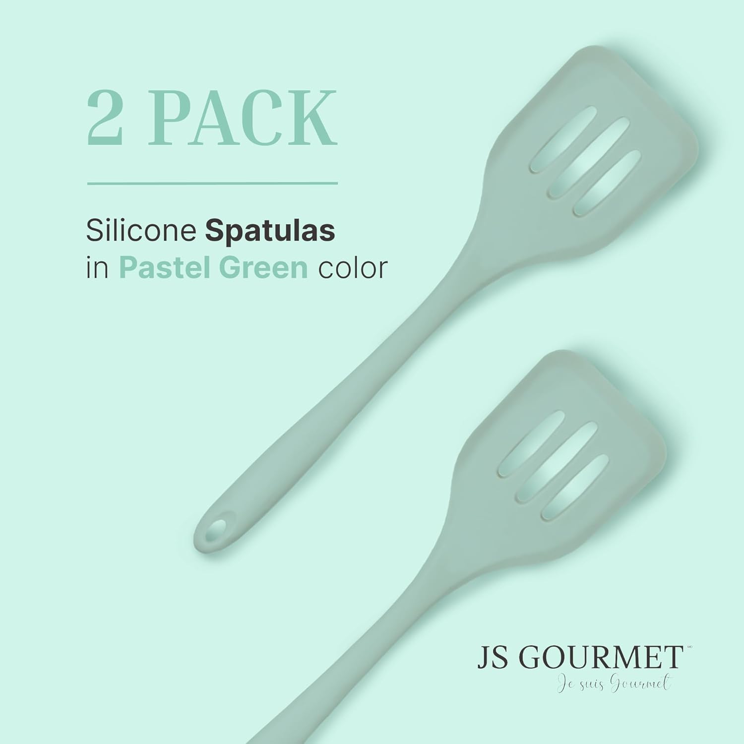 Silicone Slotted Turner Set – 2-Piece Set of Turner Spatulas for Eggs and Pancakes – Kitchen Tools & Accessories with Comfortable Handles, Heat-Resistant Utensils for Cooking and Baking – Pastel Green