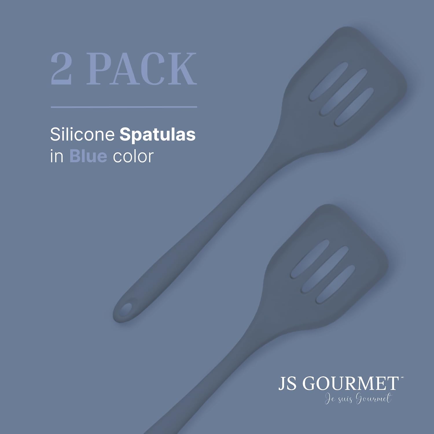 Silicone Slotted Turner Set – 2-Piece Set of Turner Spatulas for Eggs and Pancakes – Kitchen Tools and Accessories with Comfortable Handles, Heat-Resistant Utensils for Cooking & Baking – Blue