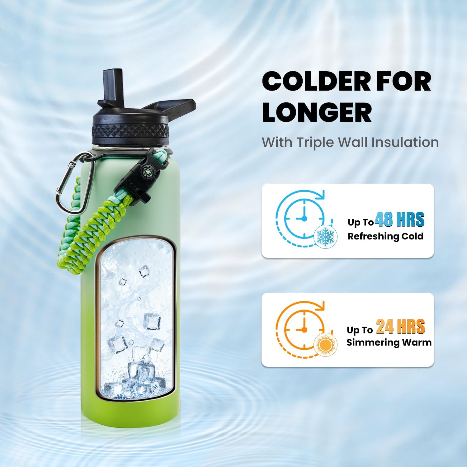- Triple Wall Insulation: Raymylo 40 oz Modern Insulated Water Bottle featuring copper plated triple wall vacuum insulation, is tested to keep your drinks icy cold for up to 48 hrs and reassuring warm 24 hrs. Get this iconic water bottle to up your fitness track, you'll fall for hydrating as every sip is absolutely cool
